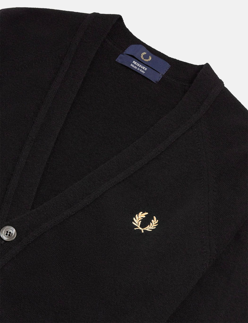 The Fred Perry Reissue Lambswool Cardigan in black from the Fred Perry knitwear collection.