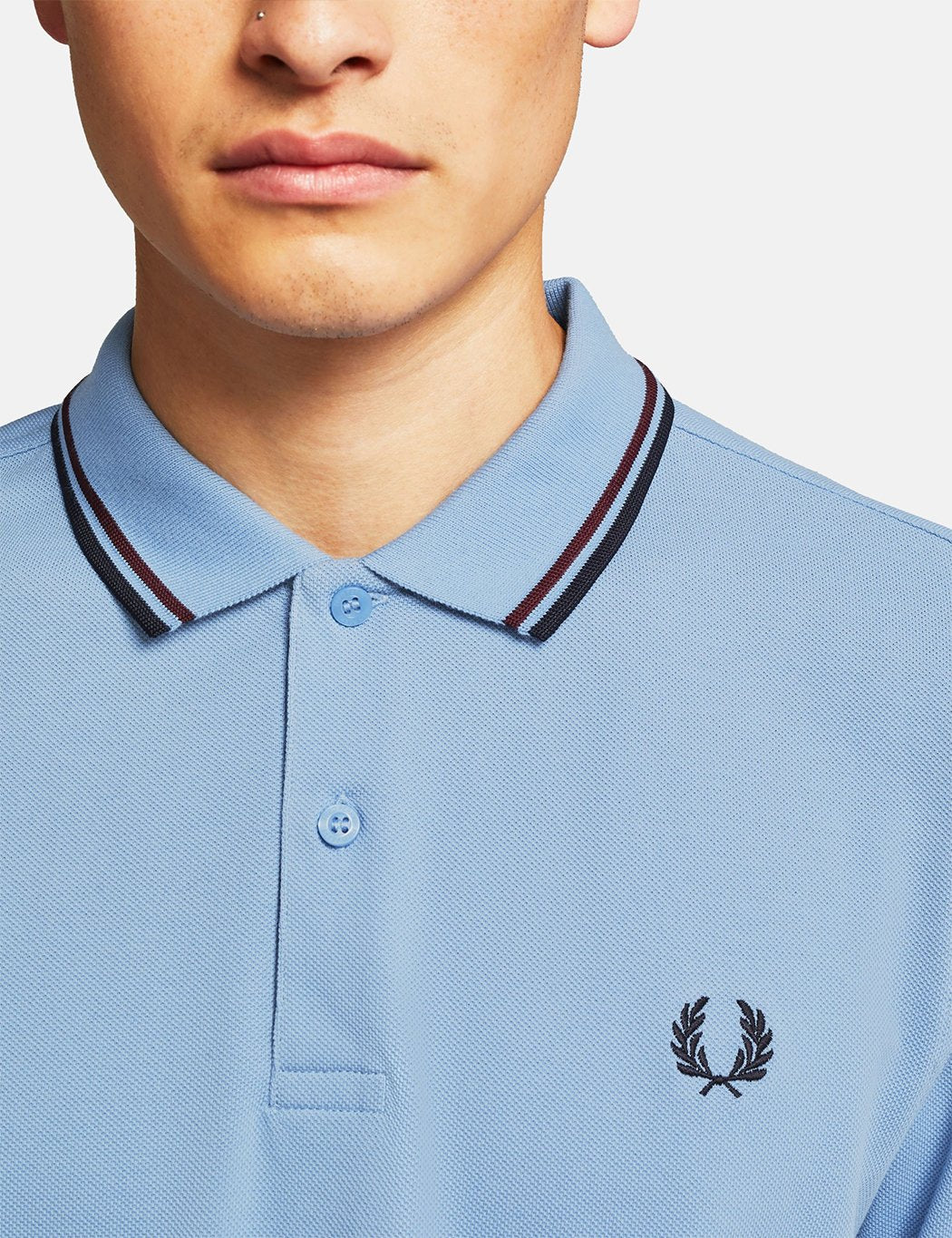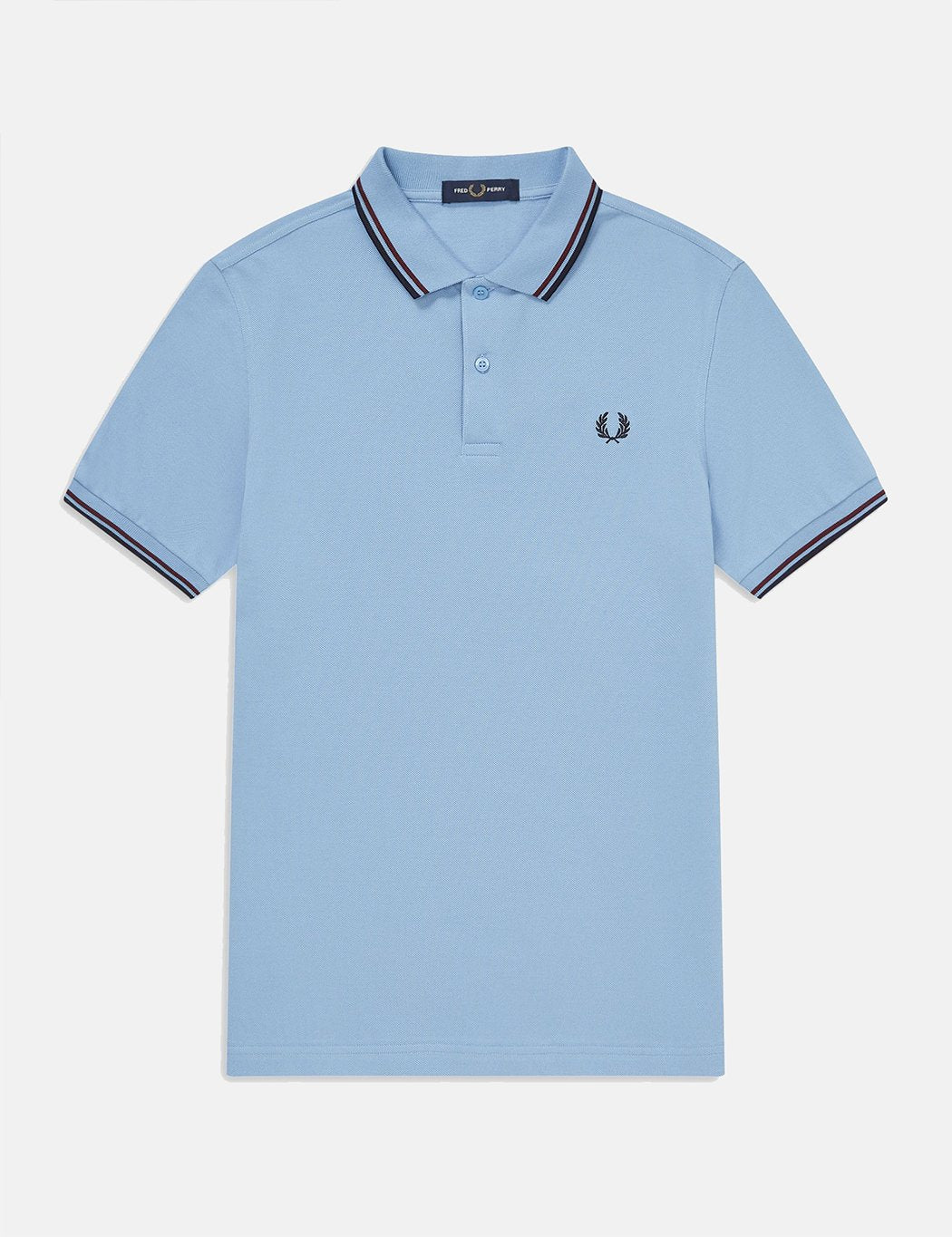 From Fred Perry Twin Tipped Polo Shirt in Sky Blue with Mahogany and Navy Blue twin tipped collar from the Fred Perry Polo shirts Spring/Summer 2020 collection.