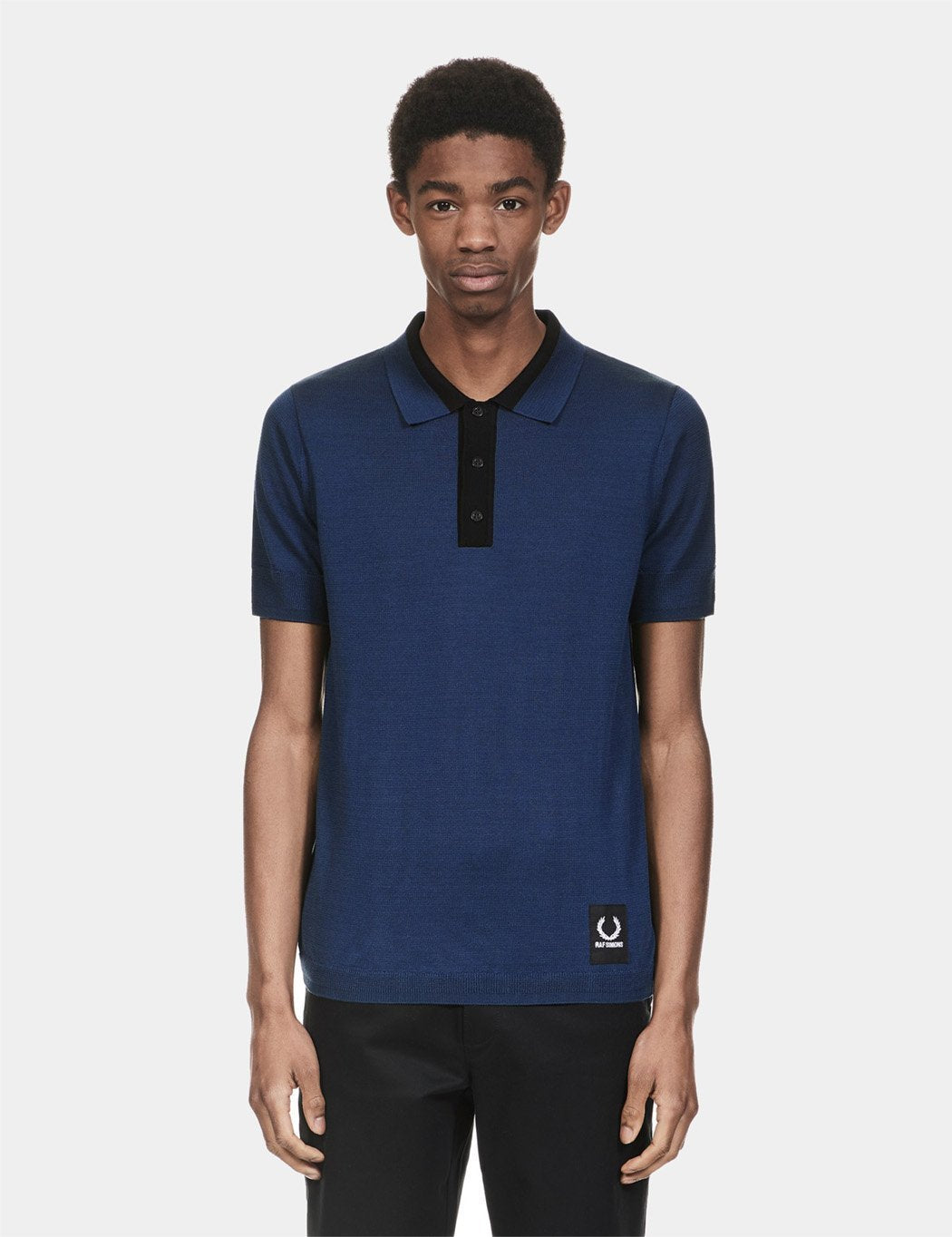 The Fred Perry x Raf Simons Knitted sport polo shirt in French Navy Blue from the Fred Perry Raf Simons Spring/Summer 2018 collection.