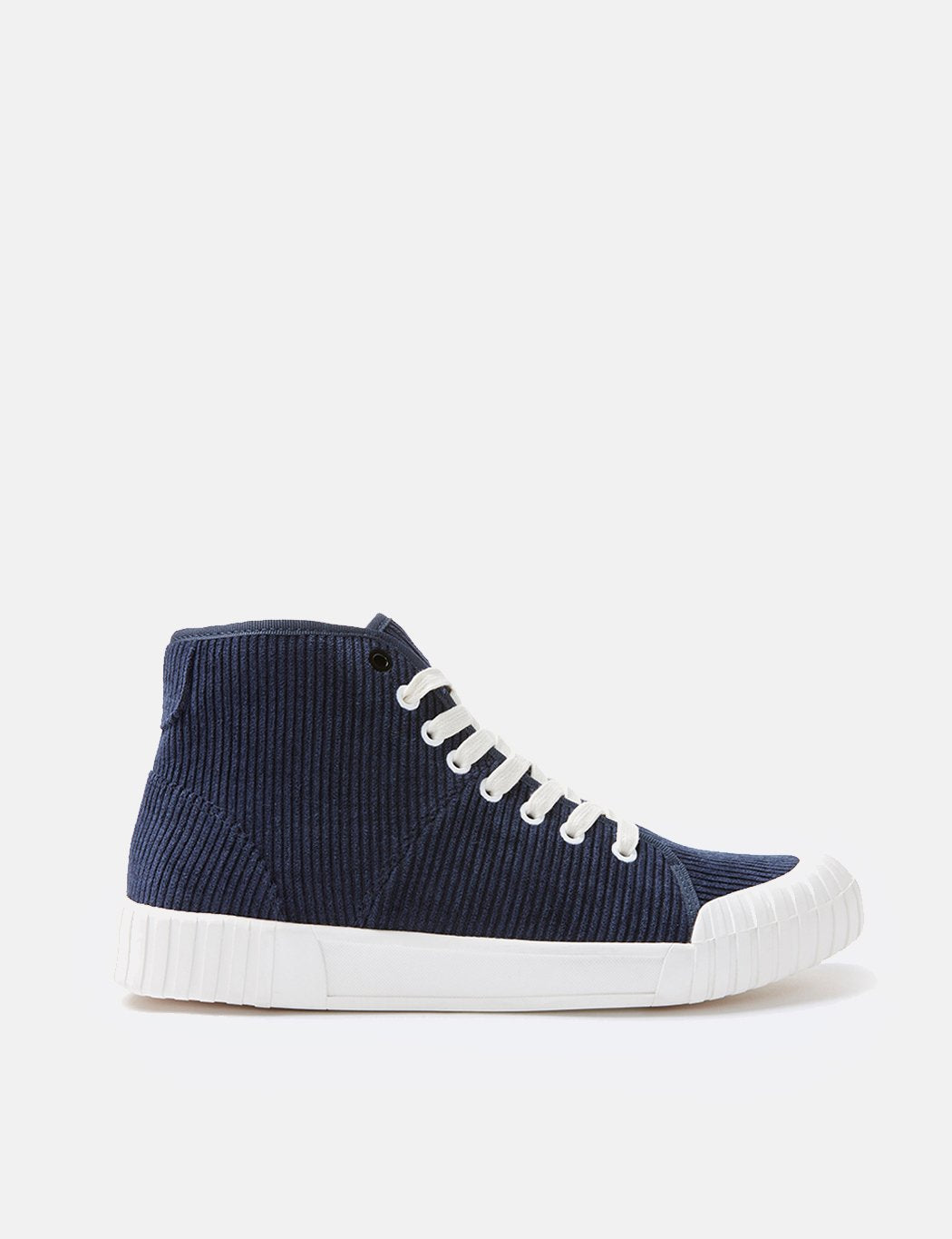 The Good News Rhubarb high-top corduroy trainers in Navy from the Good News Autumn/Winter 2018 collection.