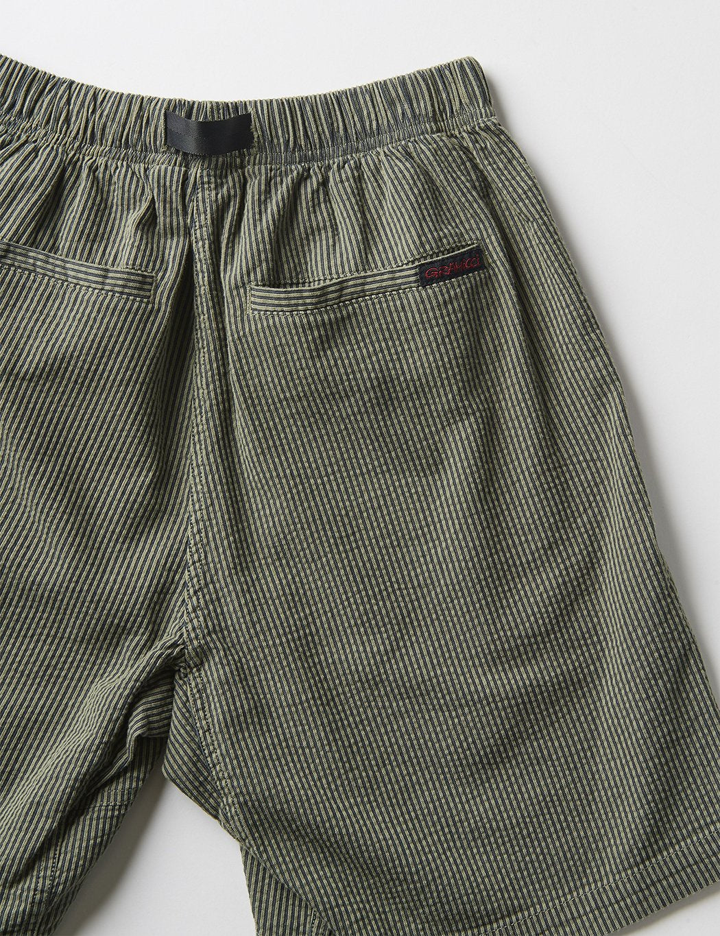 The Gramicci Sucker G-Shorts olive seersucker from the Gramicci Spring/Summer 2020 shorts collection.