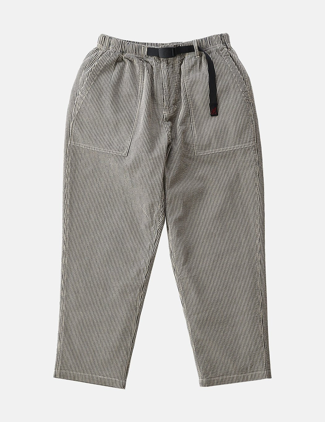 The Gramicci loose tapered pant in seersucker cotton is a masterpiece in comfort, featuring flex fit elastic waistband and integrated nylon cinch belt. Its a loose fit with a relaxed seat and thigh reinforcement lock stitching.