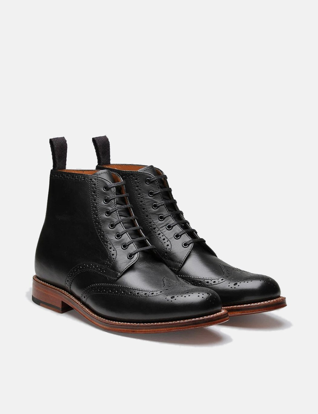 Grenson Alfred Calf Brogue Derby Boot (Leather) - Black