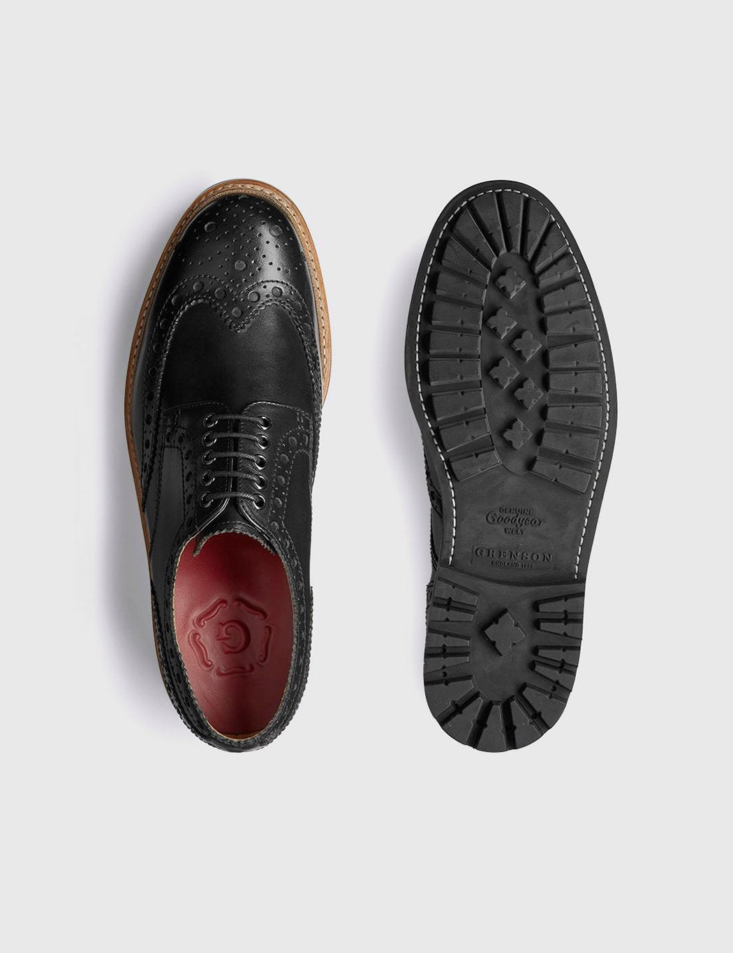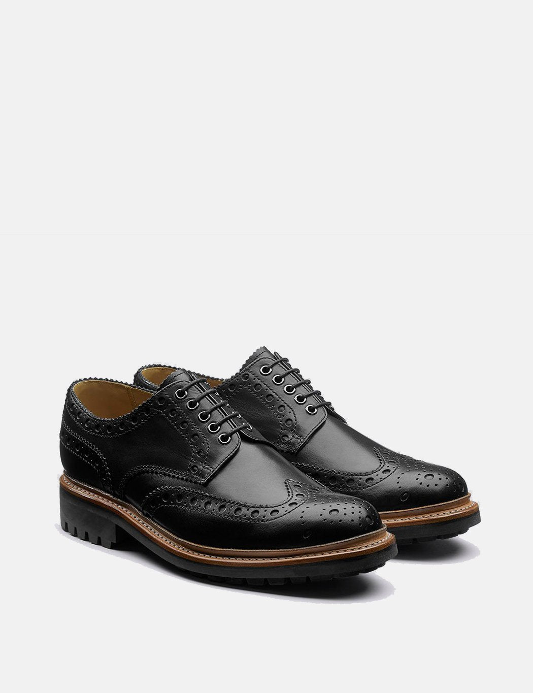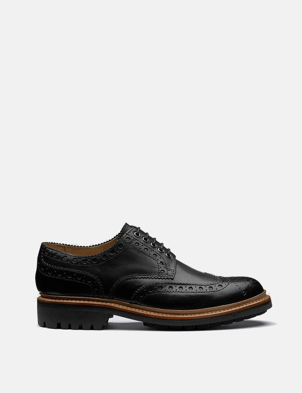 The Grenson Archie is Stanley's wayward brother. He is a mens full English brogue but is a Gibson instead of an Oxford and all of his features are oversized and chunky. For the new season it comes in a new calf leather and chunky natural split welt on a commando sole.
