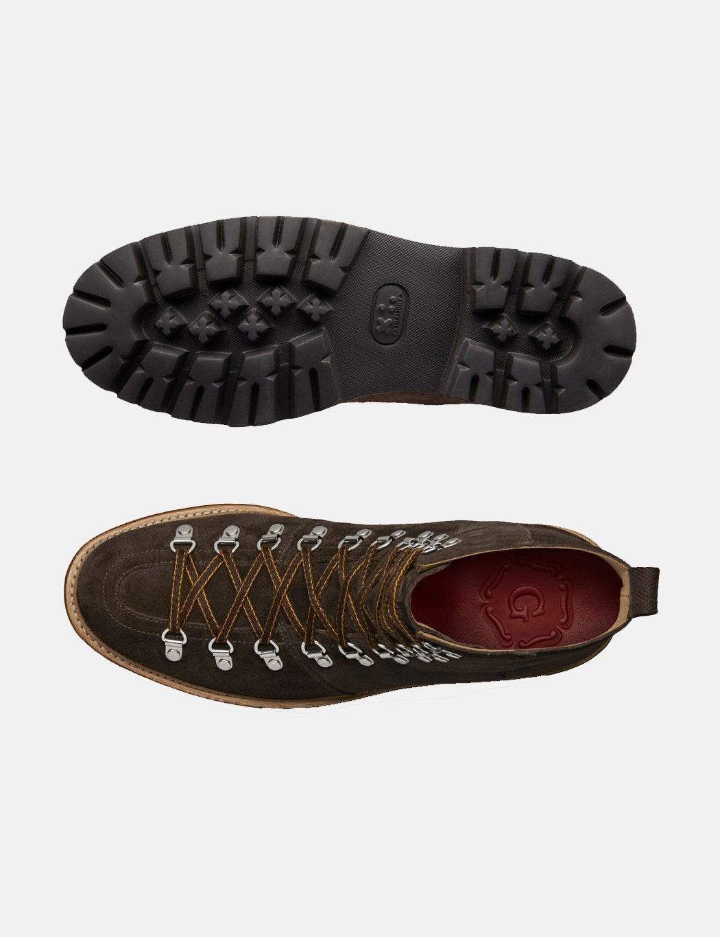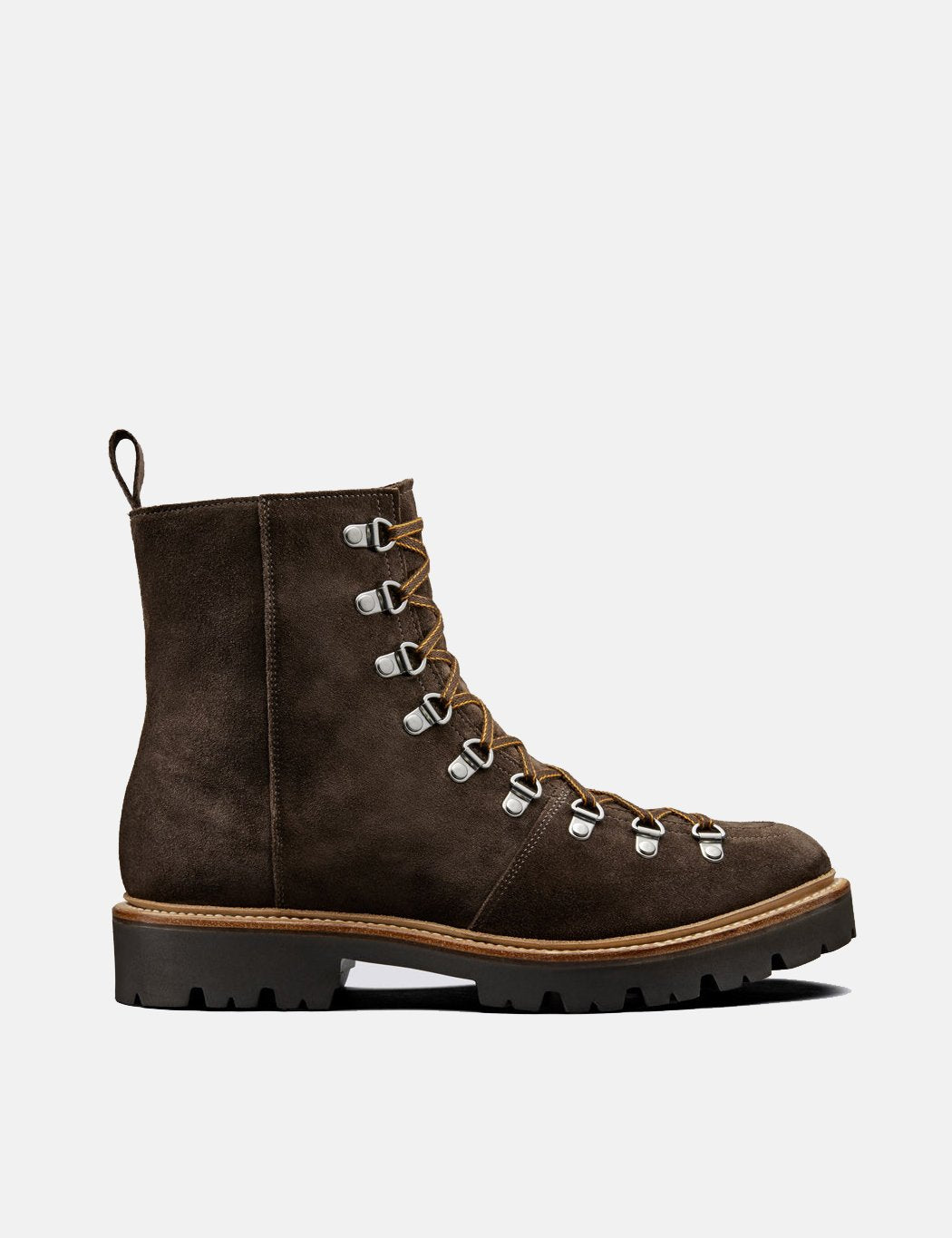 The Grenson Brady ski boot in peat brown suede from the Grenson boots Autumn/Winter 2019 collection.