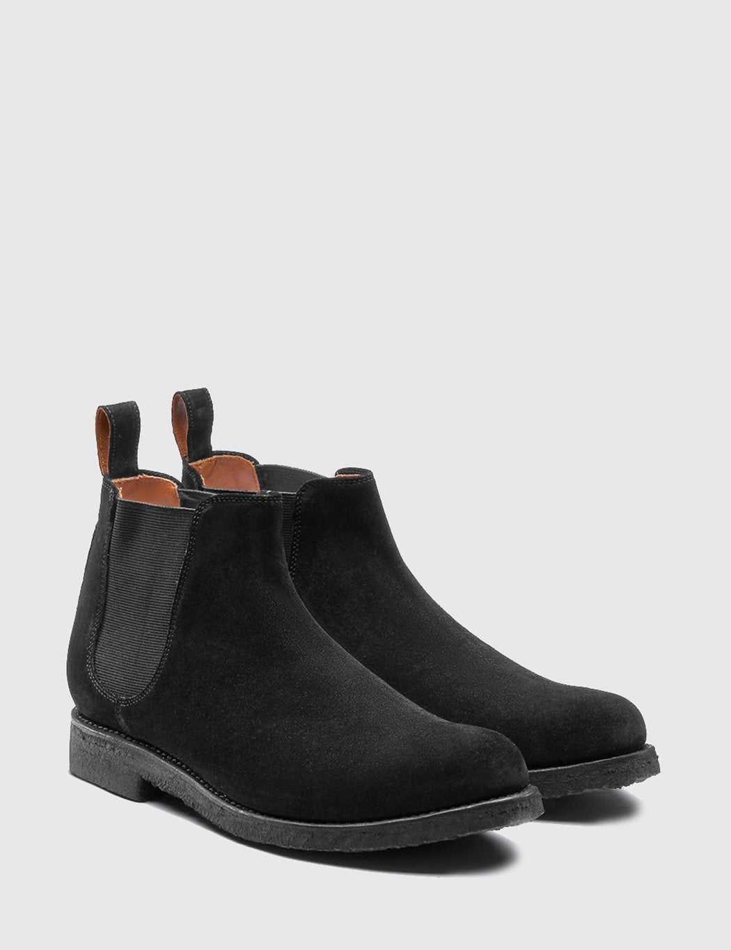 The Hayden is a classic Chelsea suede boot. It features elastic ankle panels, ankle pull tabs and black crepe sole.