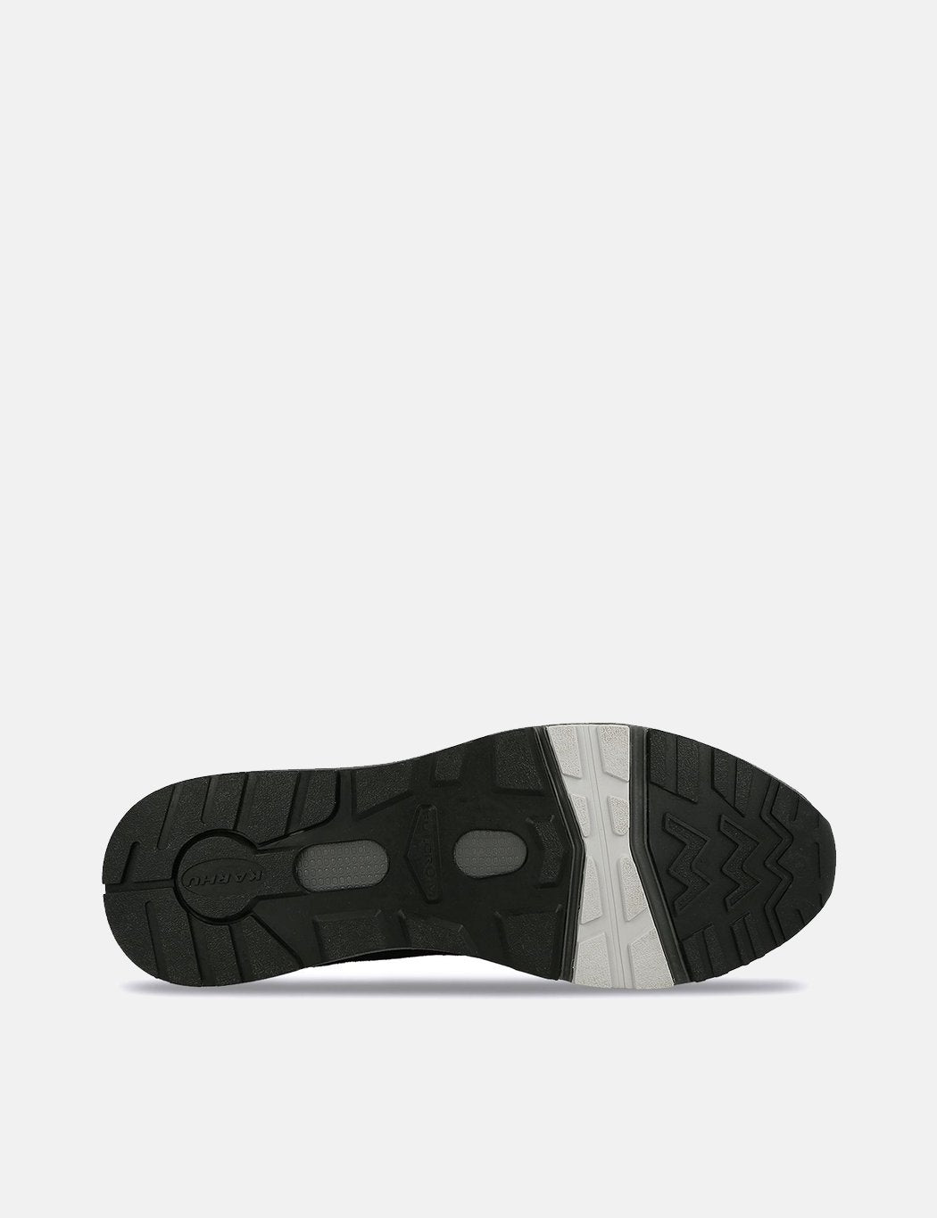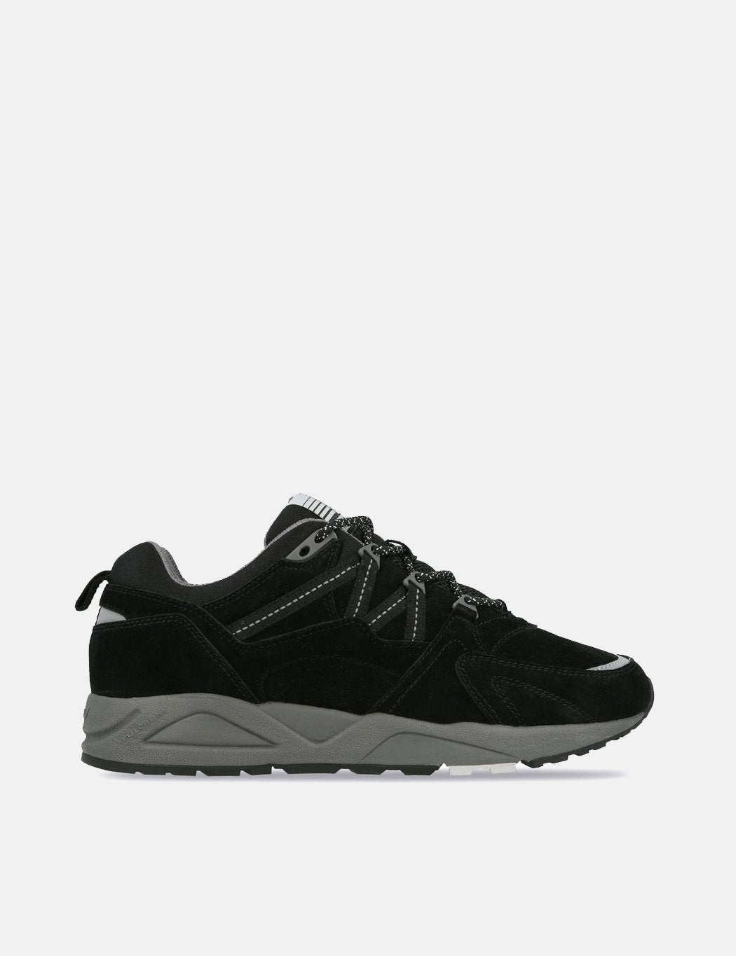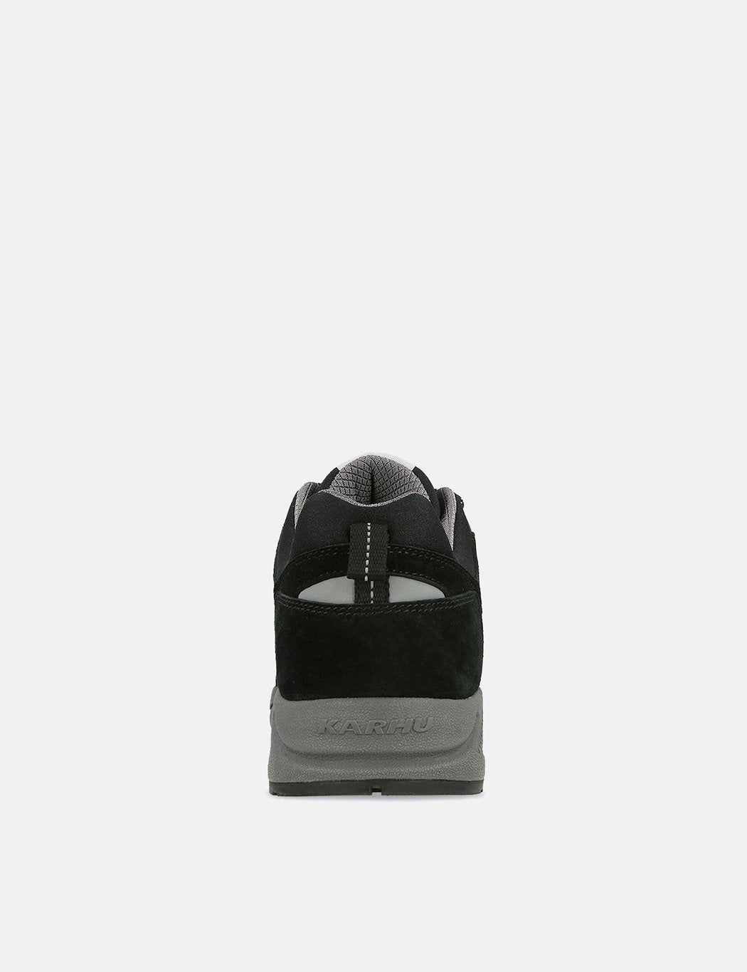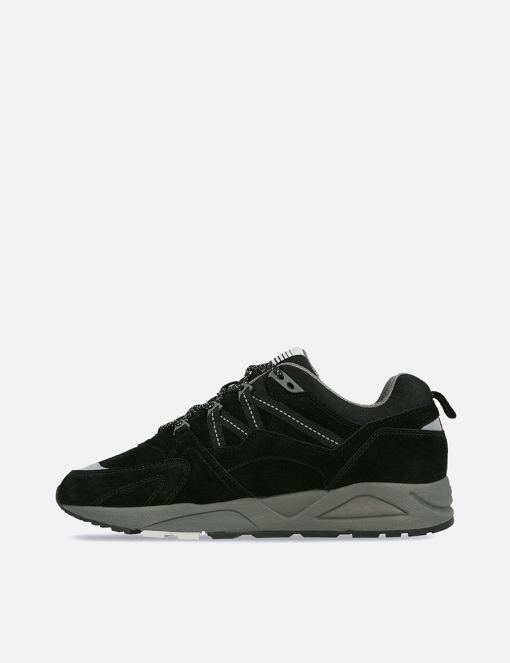 The Karhu Fusion 2.0 in black with grey accent tones on sole unit and inner lining. Featuring a full pigskin suede upper, signature Karhu rope laces and metal lace loops.
