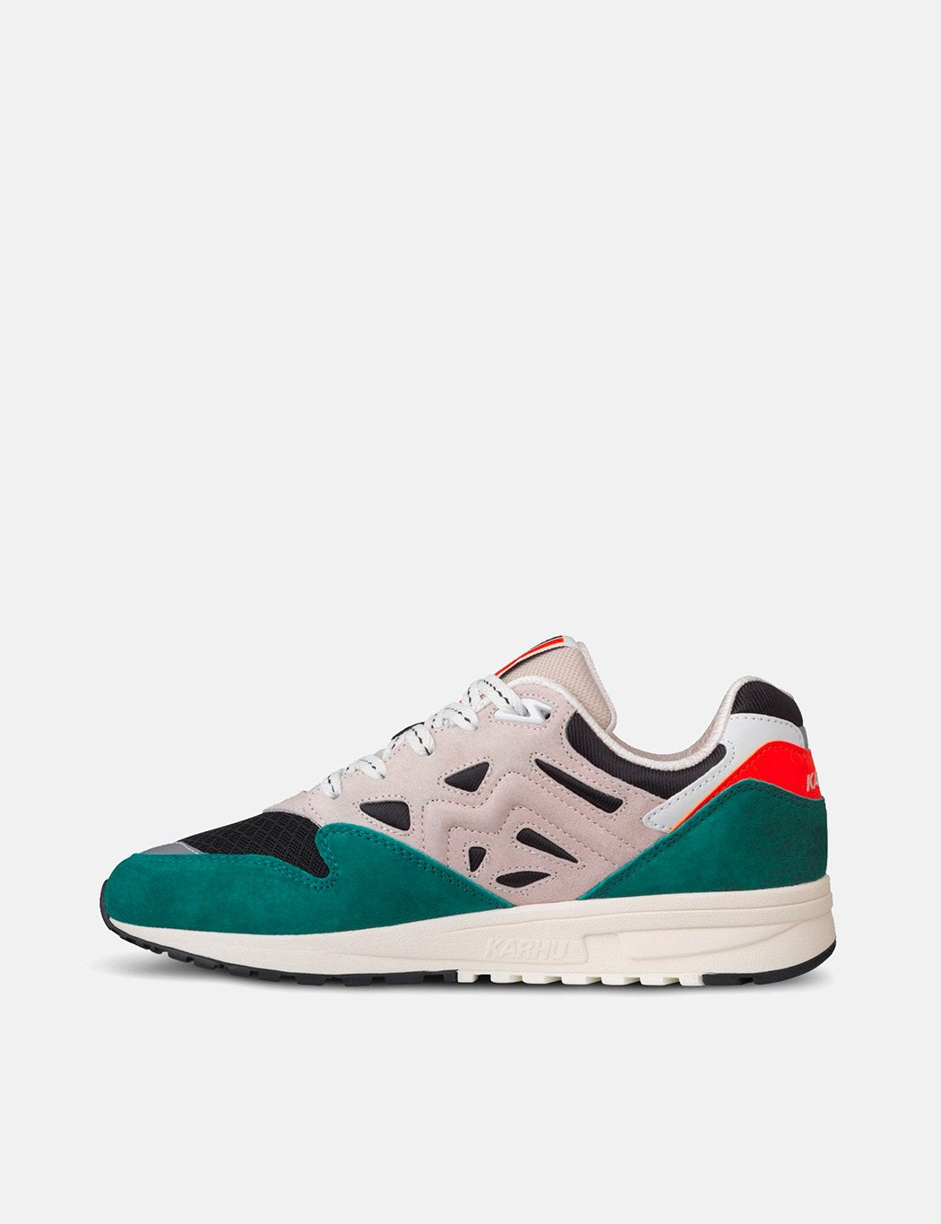 The Karhu Legacy classic features a compression molded EVA midsole, true to the original version for the early 1990's. Premium pigskin suede uppers, and synthetic overlays.
