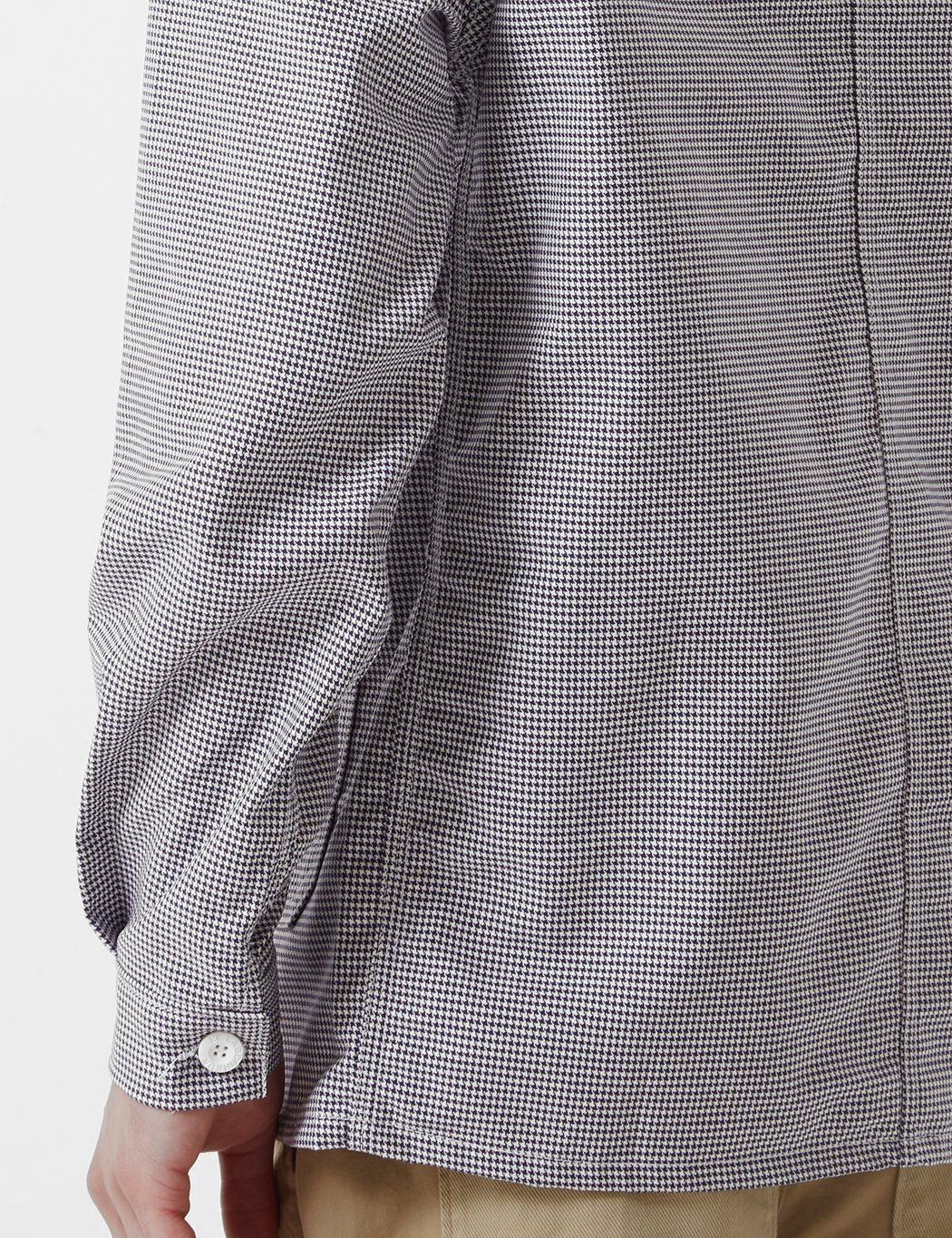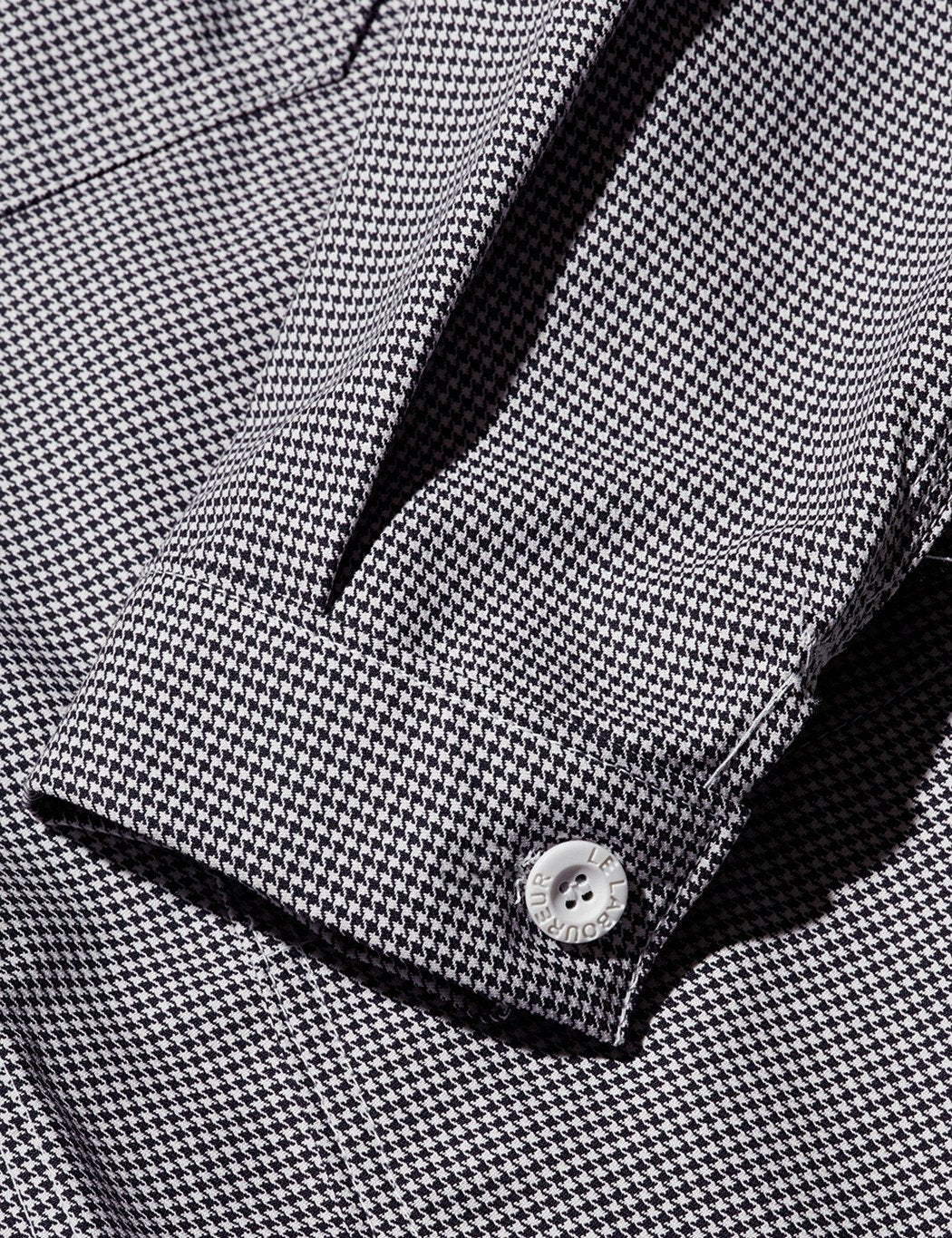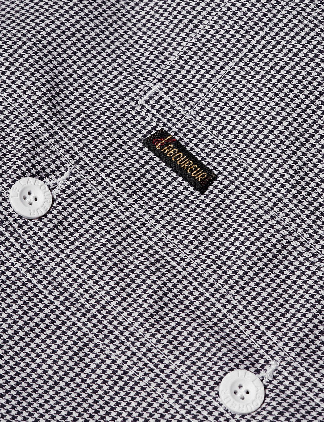 The Le Laboureur Cotton Houndstooth work jacket in Black/White houndstooth check from the Le Laboureur work jackets core collection. The original French sack coat, made in France.