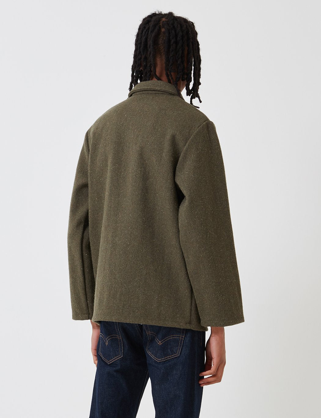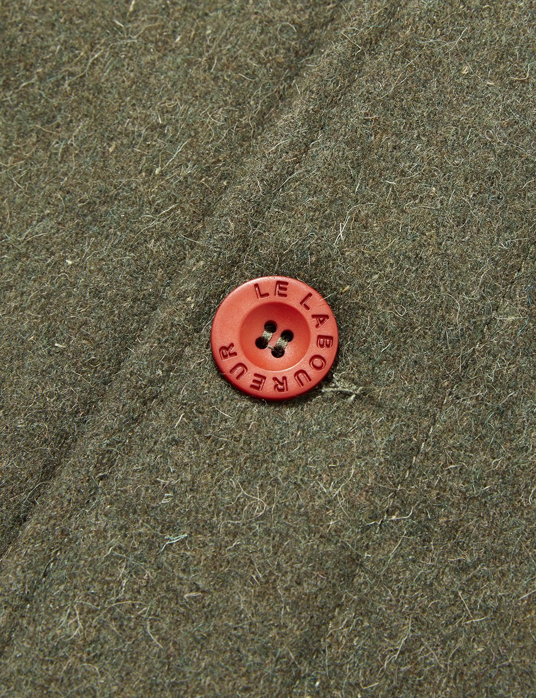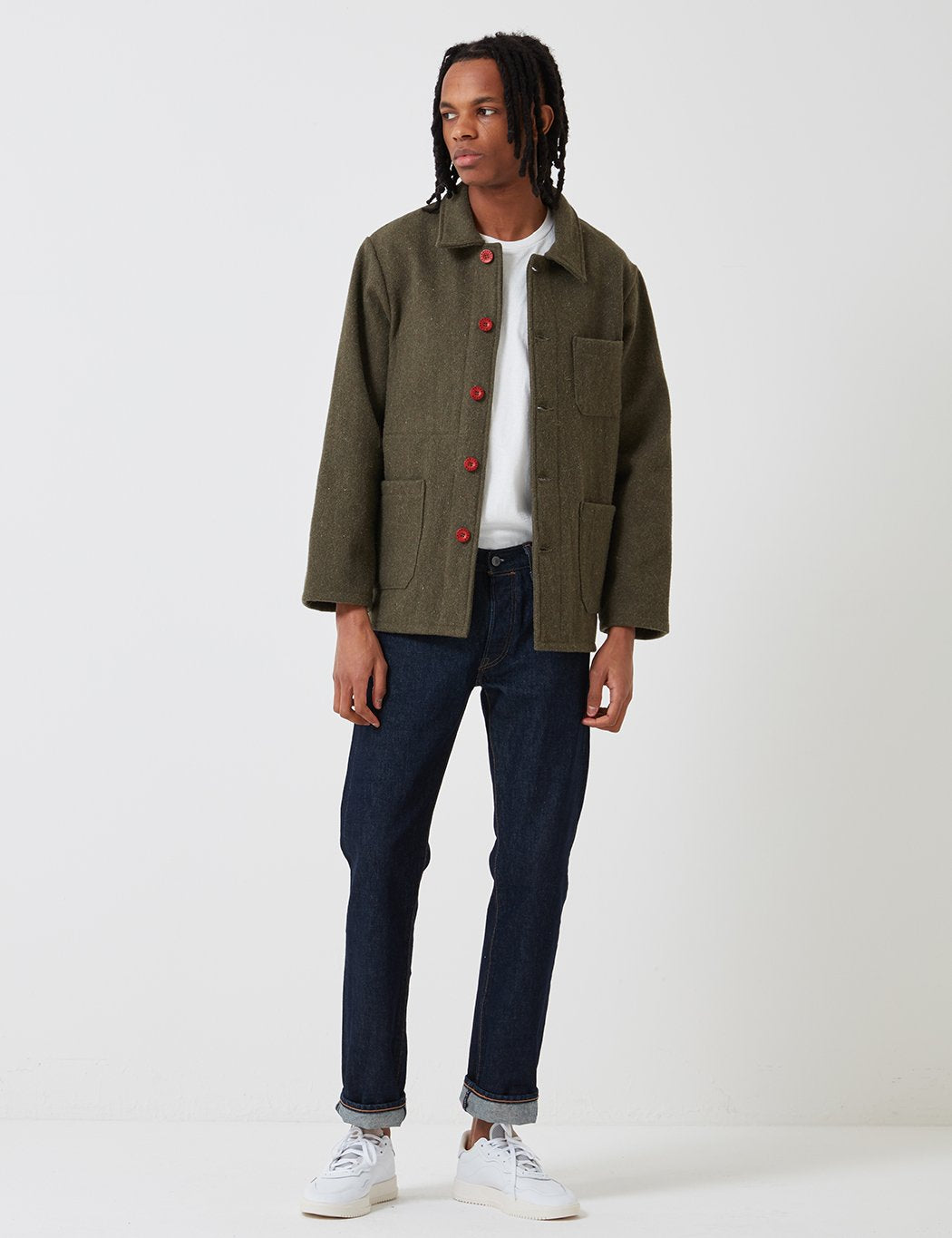 The Le Laboureur Wool Work Jacket in Khaki Green from the Le Laboureur work jackets core collection. The original French sack coat, made in France.