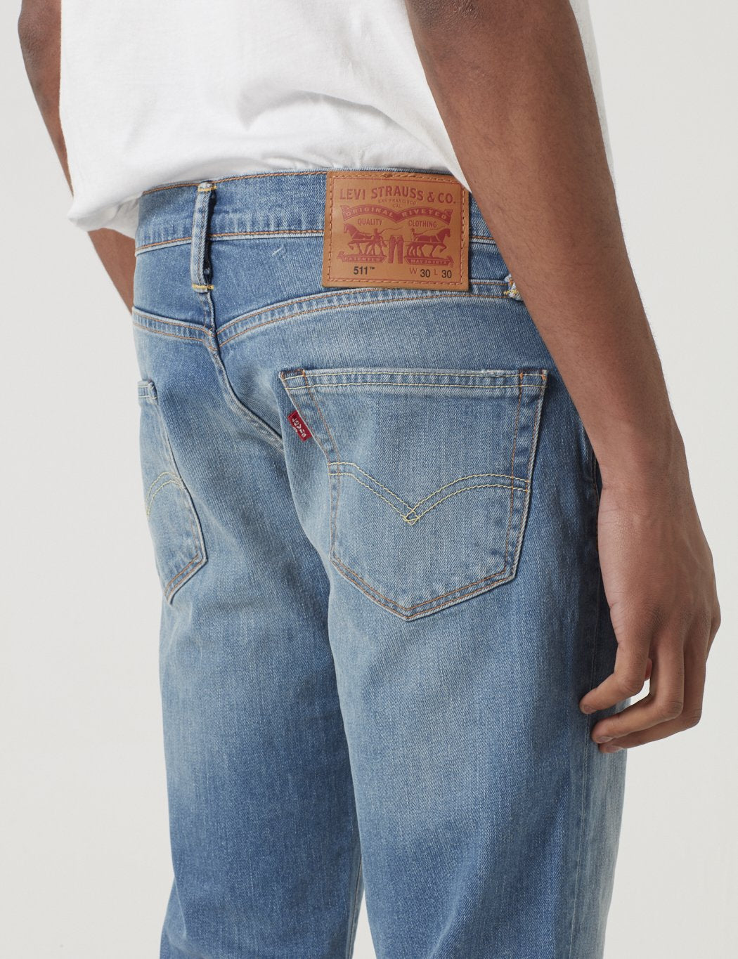 The Levis 511 slim fit jeans in Harbour Blue from the Levis 511 jeans core collection. The Levi 511 is Levi's classic slim fit, there is a reason why it's their most popular and imitated by all other denim brands.