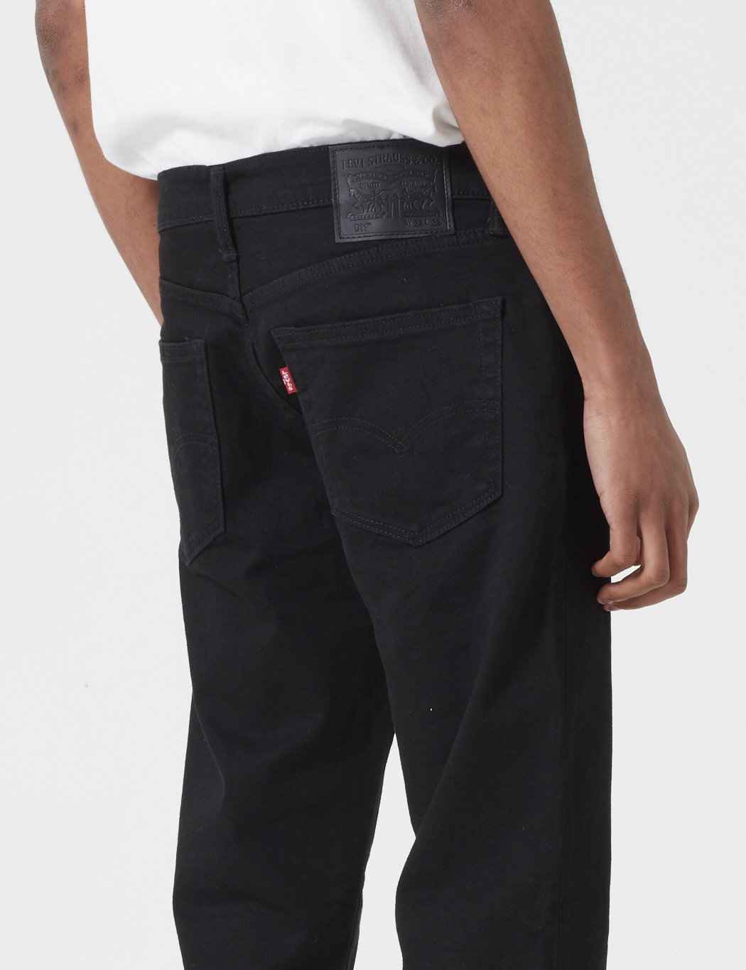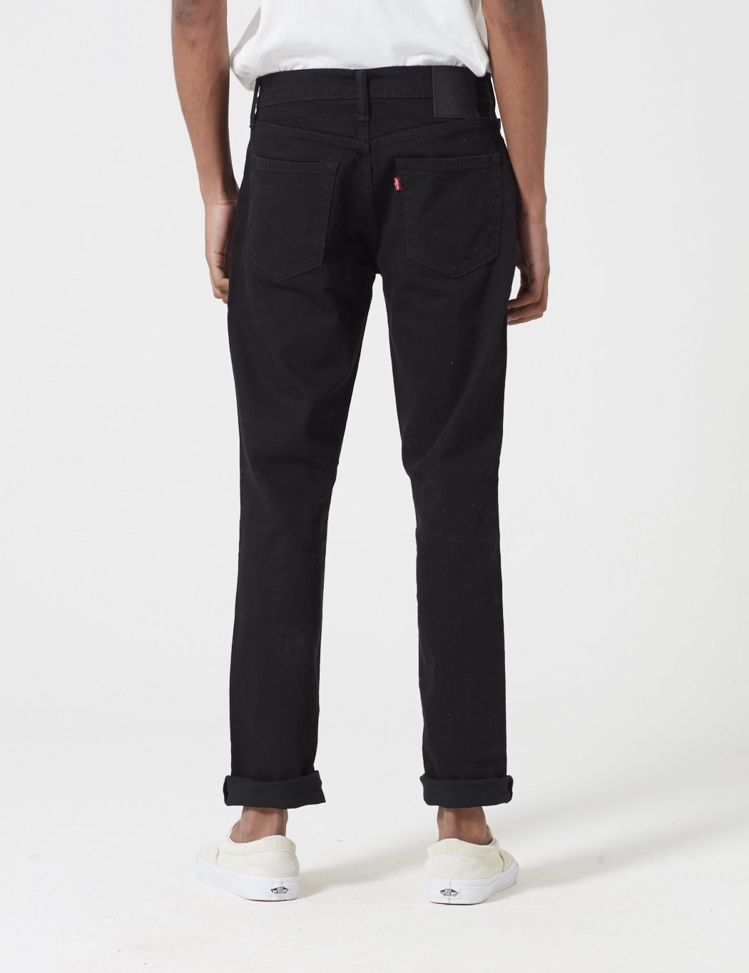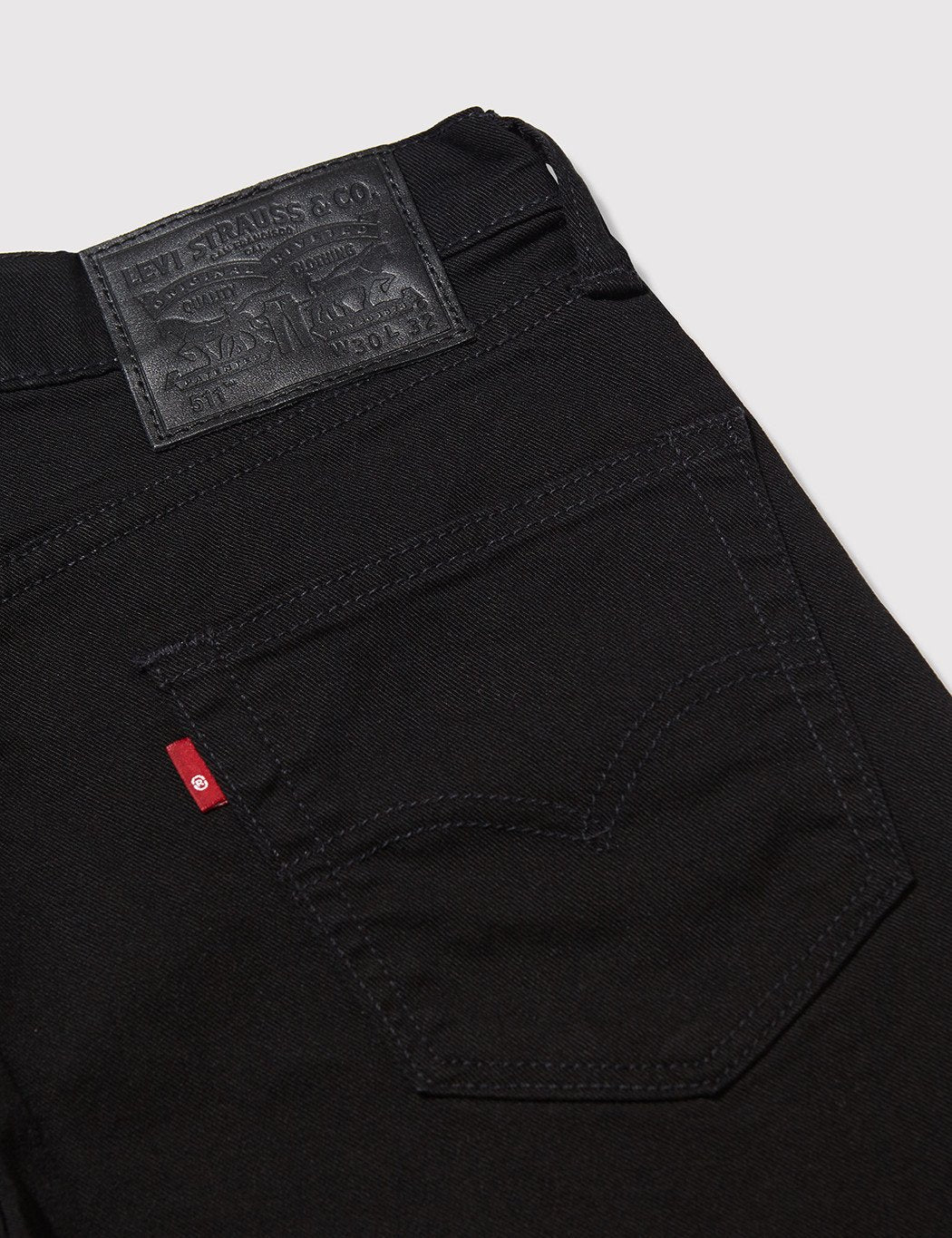 The Levi's 511 slim-fit jeans in nightshine black. The 511 sits below the waist with a slim fit through the hip and thigh and a slim leg. They feature the classic details and a black leather patch on back.