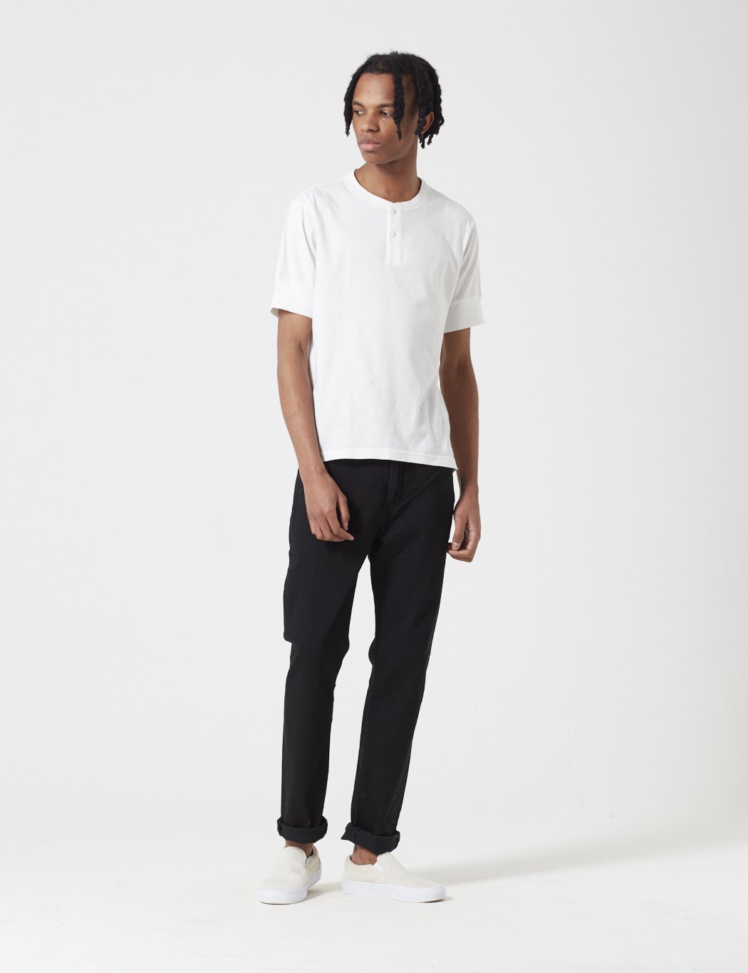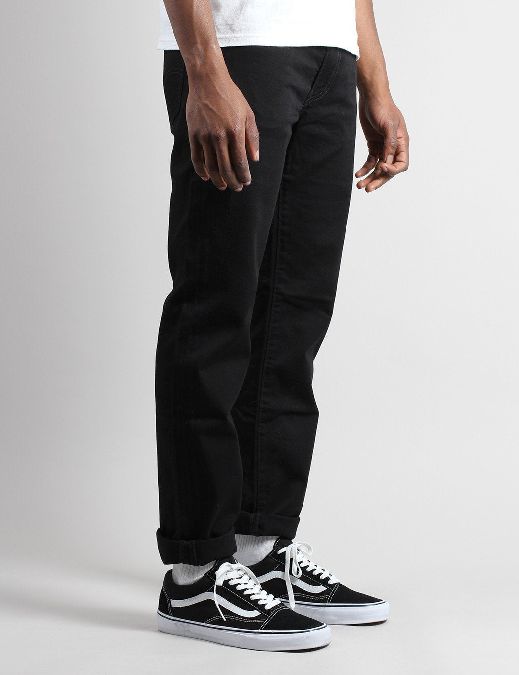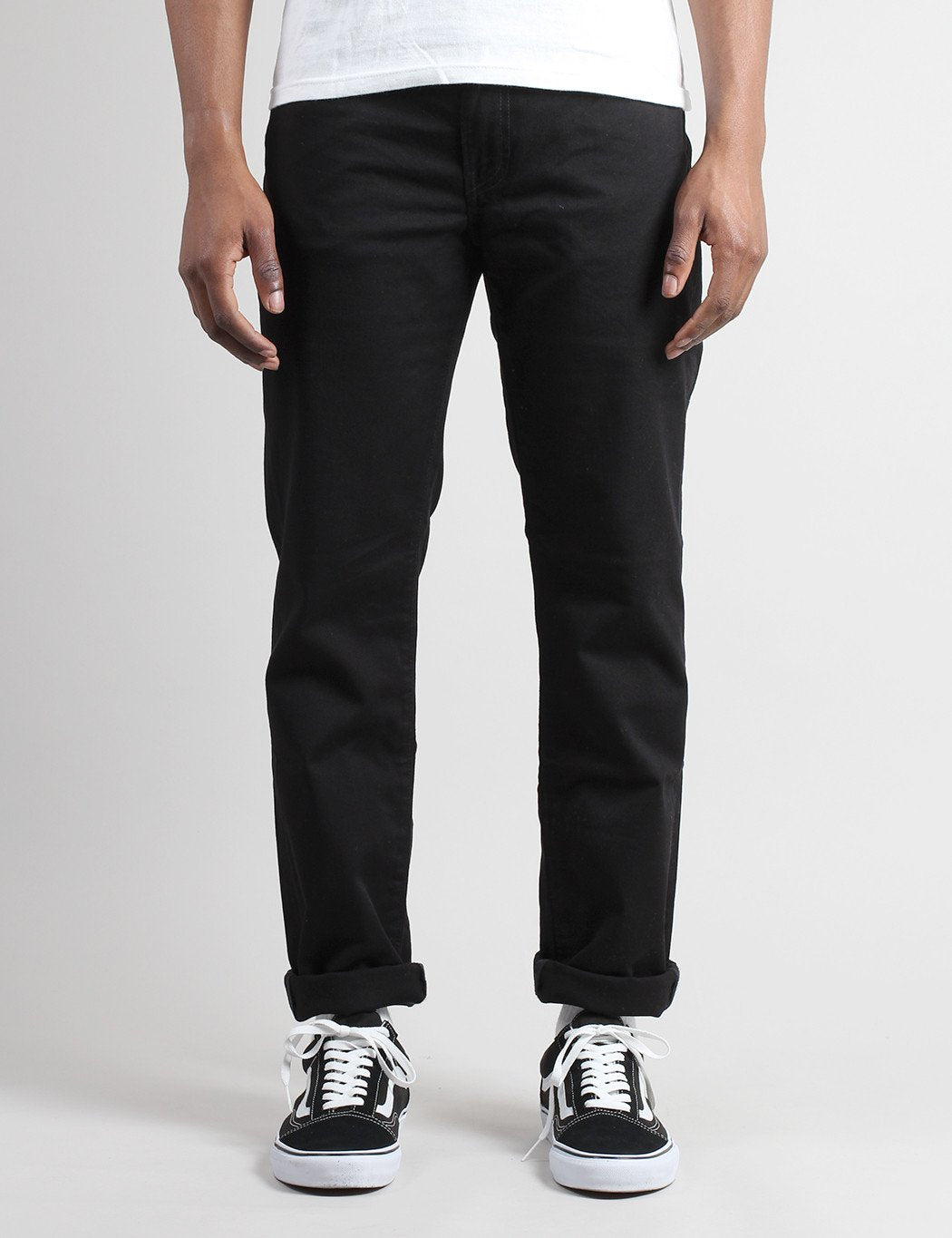 The Levi's 511 slim-fit jeans in nightshine black. The 511 sits below the waist with a slim fit through the hip and thigh and a slim leg. They feature the classic details and a black leather patch on back.