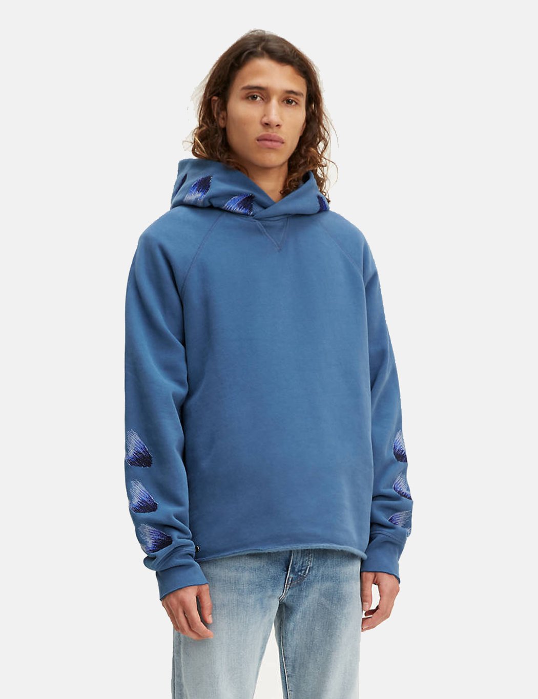 The Levis Made & Crafted Unhemmed Hoodie in Moonlight Blue from the Levi's Made & Crafted sweatshirts Spring Summer 2019 collection.