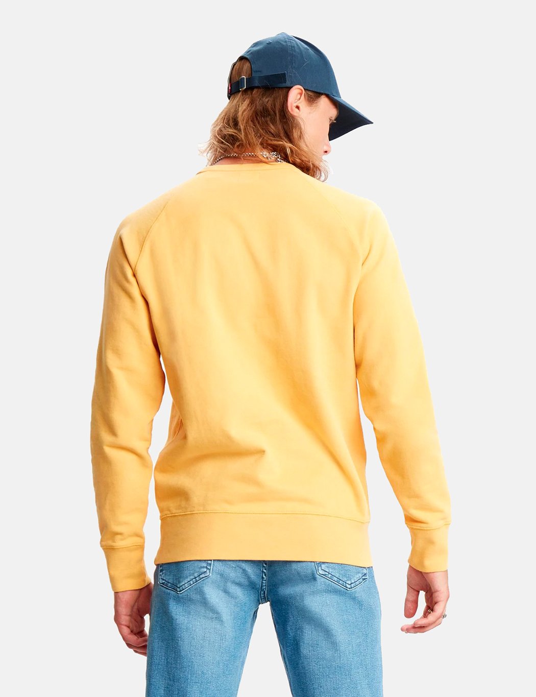 The Original Housemark mid-weight sweater in golden apricot from the Levis Red Tab range, featuring classic Levis embroidered batwing logo on the chest.