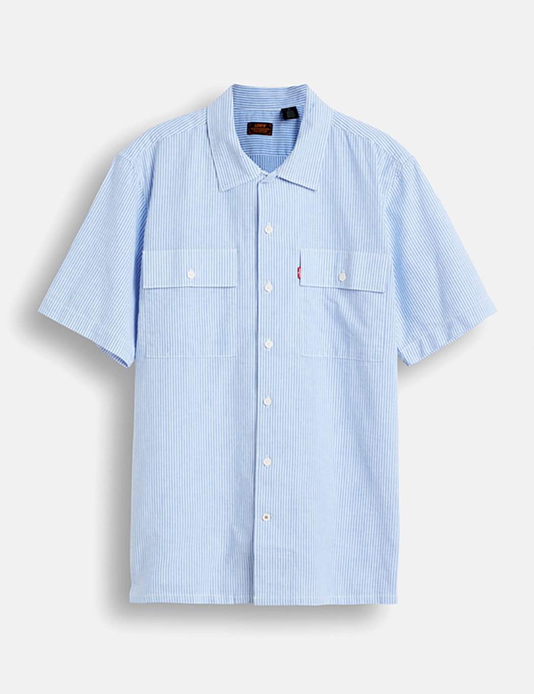 The Levis Skateboarding short sleeve button down shirt in blue and white stripe from the LSC collection.
