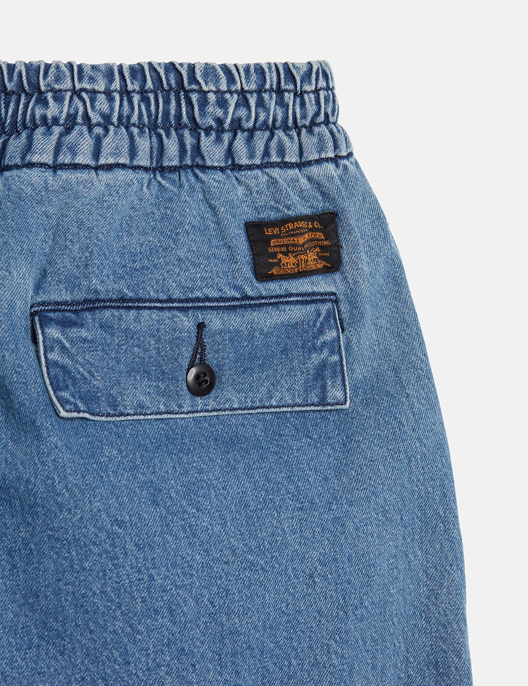 The relaxed fit Levis easy pant features a drawstring and elasticated waist made in denim.