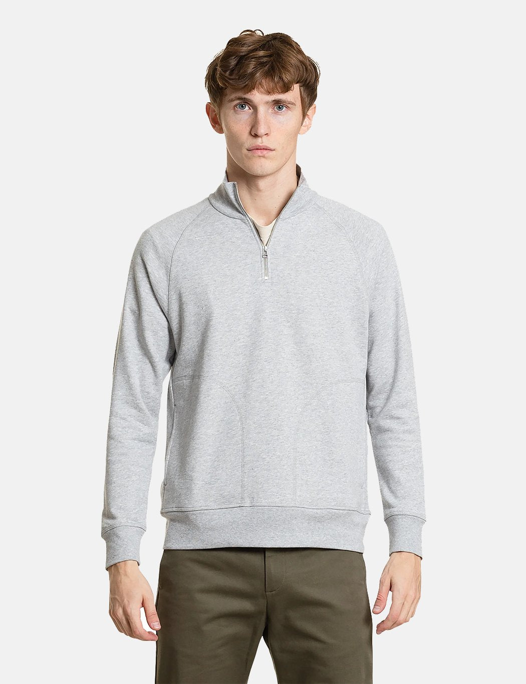The Norse Projects Alfred Light Quarter Zip Sweatshirt in light grey melange from the Norse Projects collection.