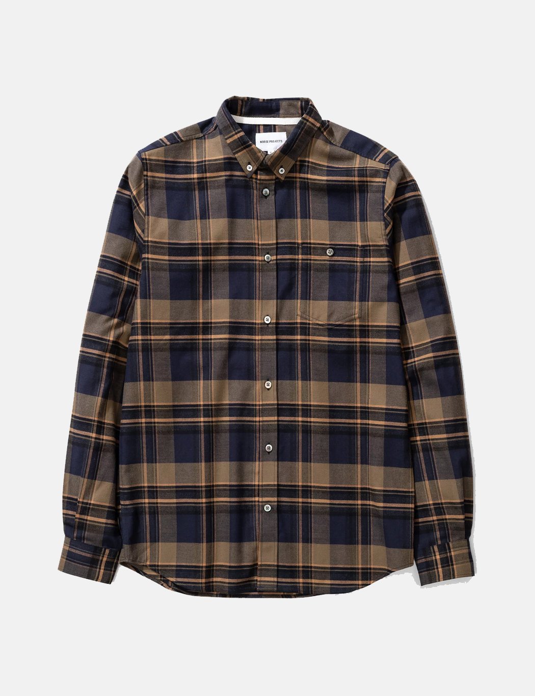 The Norse Projects Long Sleeve Anton Brushed Flannel Shirt in ivy green check from the Norse Projects shirts Autumn/Winter 2019 collection.