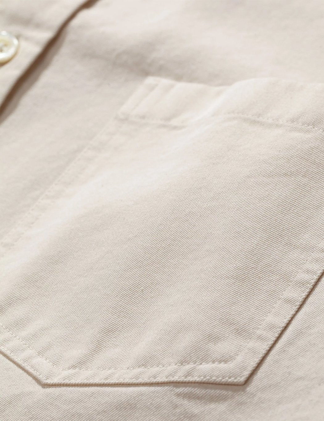 The Anton is a classic button down shirt, this time cut from Italian denim cotton. The fabric has been garment dyed giving it a rich texture and colour. It features mother of pearl buttons and one patch chest pocket, higher top button on placket, allowing the top button to be undone while still maintaining a clean look.