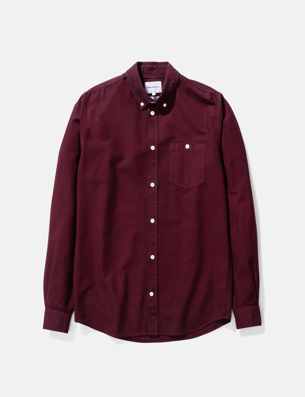 The Norse Projects Anton oxford shirt in mulberry red from the Norse Projects shirts Autumn/Winter 2019 collection.