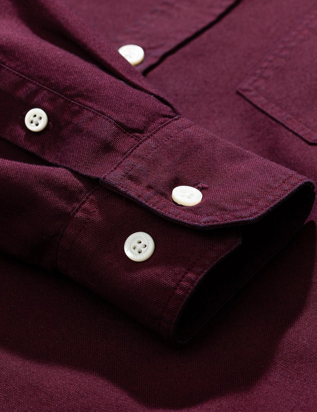 The Anton is a classic button down shirt, cut from a midweight three-ply Oxford cloth. It features mother of pearl buttons and one button-close chest pocket, higher top button on placket, allowing the top button to be undone while still maintaining a clean look.