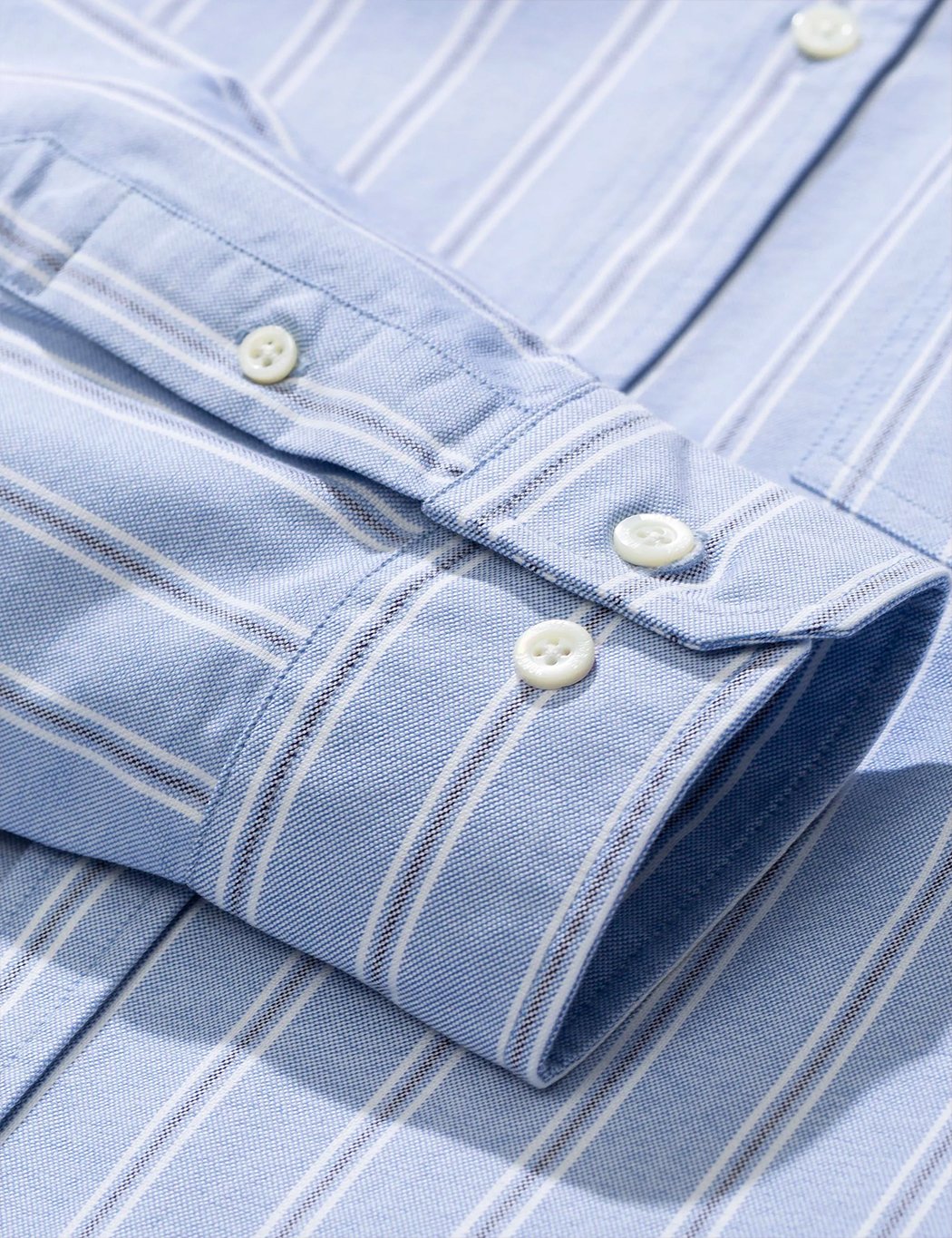 The Anton is a classic button down shirt, cut from a midweight three-ply Oxford cloth. It features mother of pearl buttons and one button-close chest pocket, higher top button on placket, allowing the top button to be undone while still maintaining a clean look.Product Details: