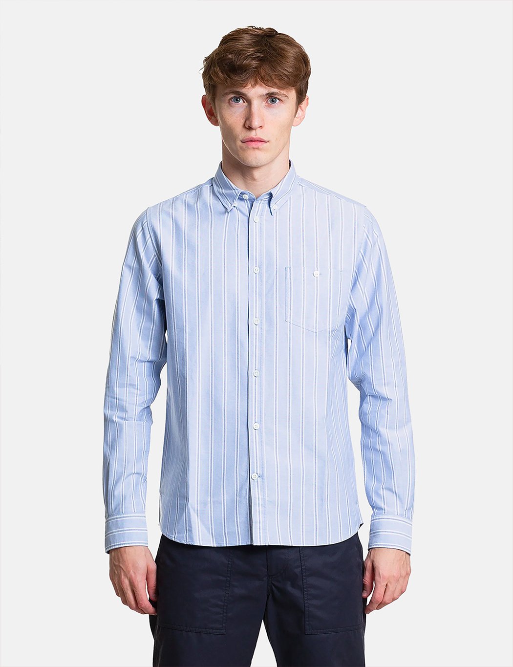 The Norse Projects Anton Multi Stripe Oxford Shirt in Pale Blue from the Norse Projects shirts Spring/Summer 2020 collection.
