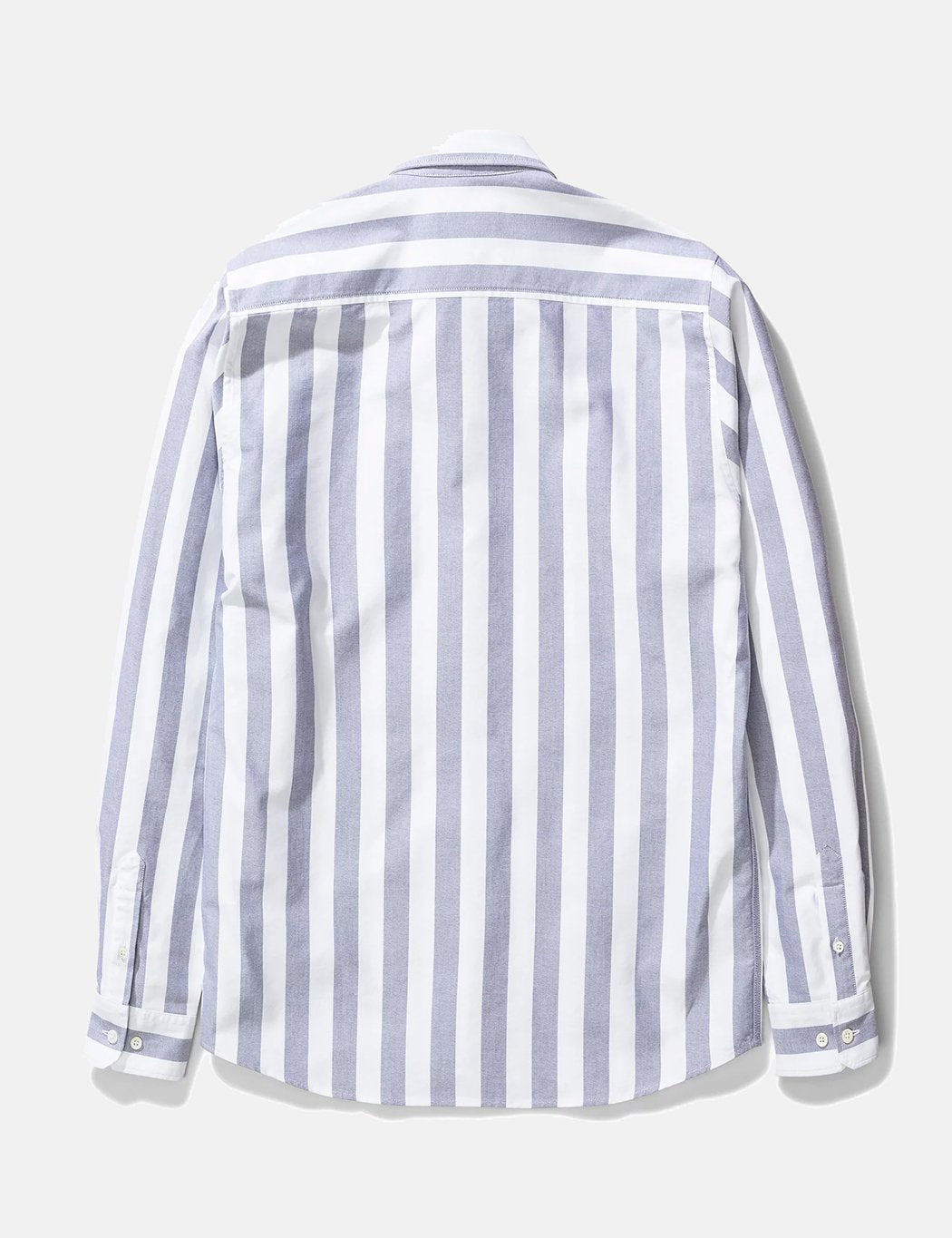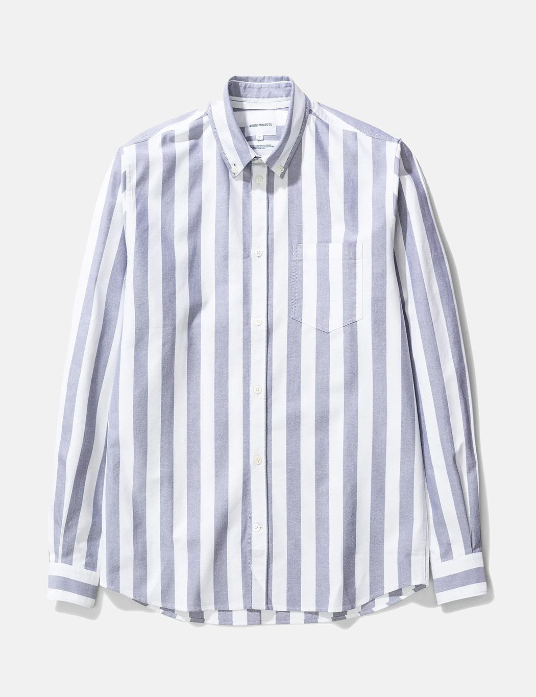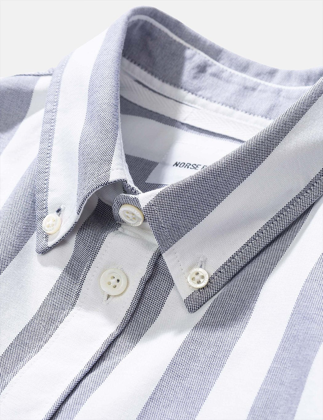 The Norse Projects Anton Wide Stripe Oxford Shirt in navy blue and white from the Norse Projects shirts Spring/Summer 2020 collection.