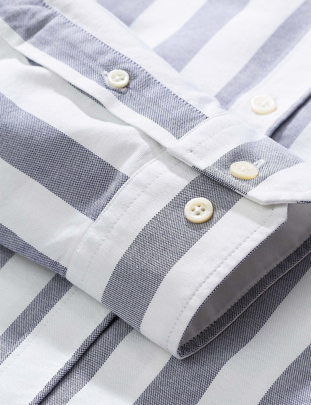 The Anton is a classic button down shirt, cut from a midweight three-ply Oxford cloth. It features mother of pearl buttons and one button-close chest pocket, higher top button on placket, allowing the top button to be undone while still maintaining a clean look.Product Details: