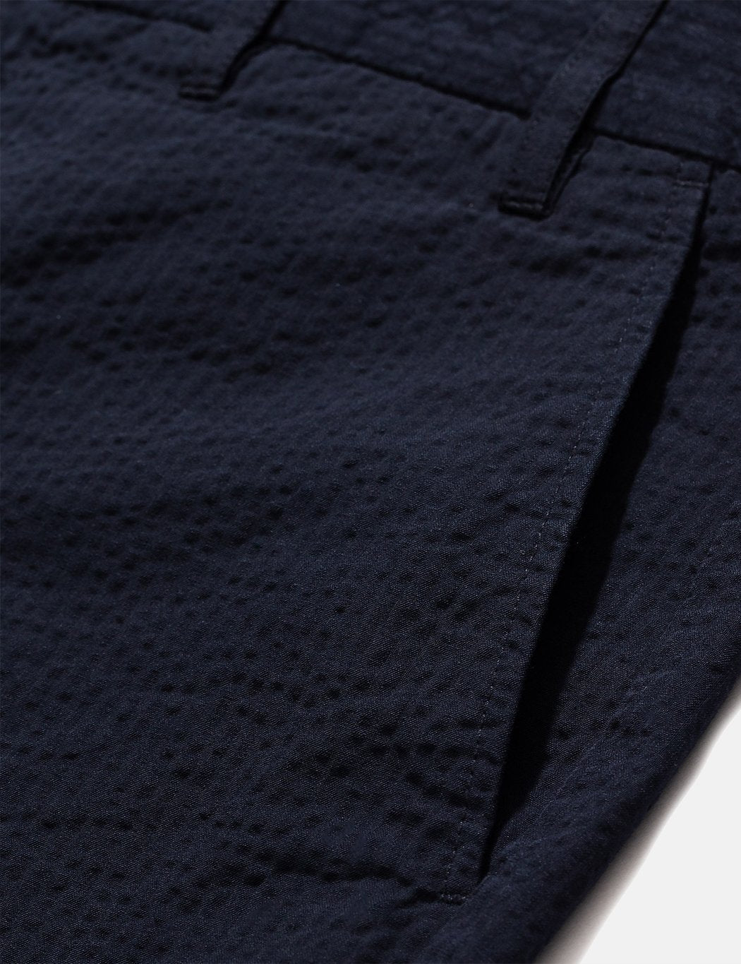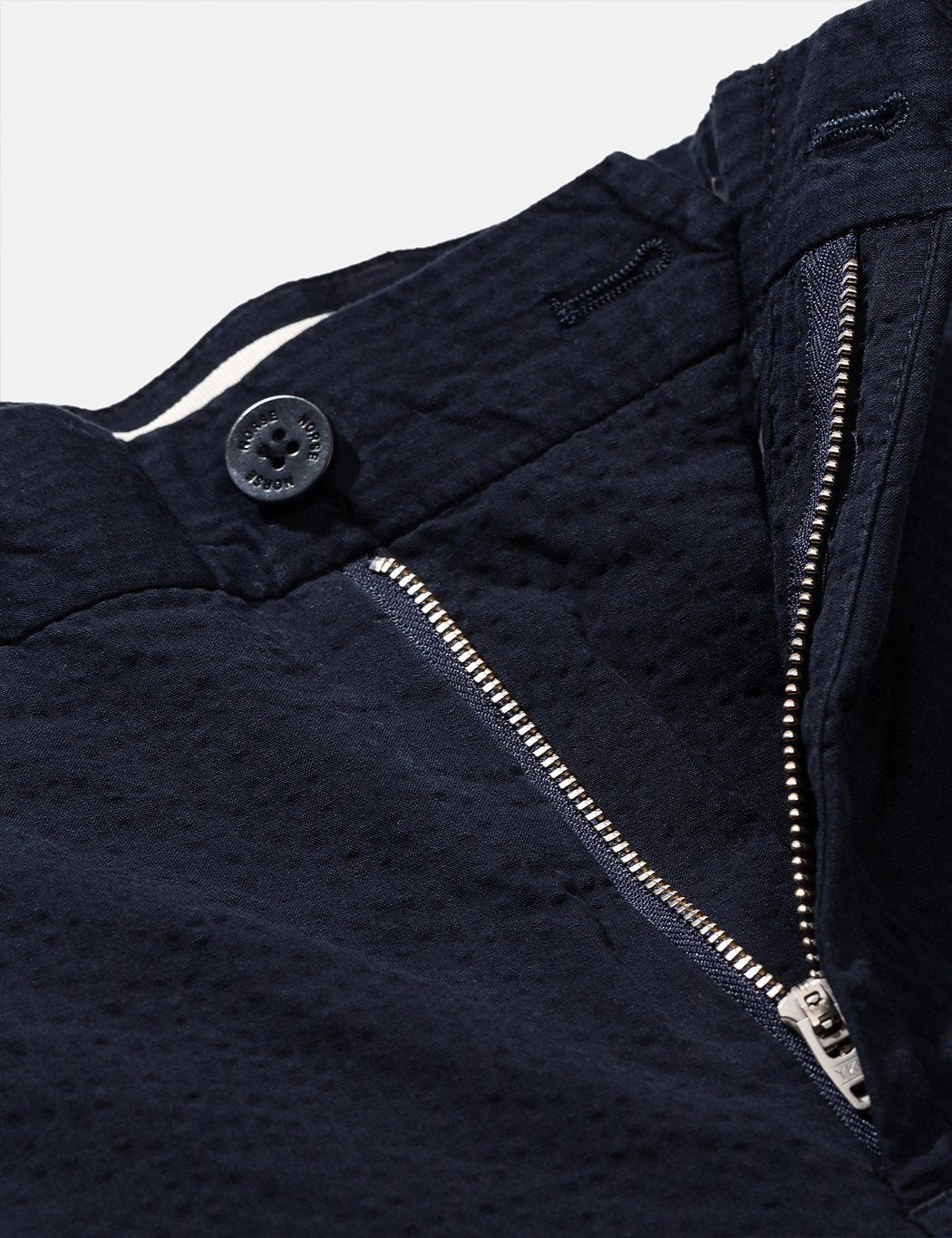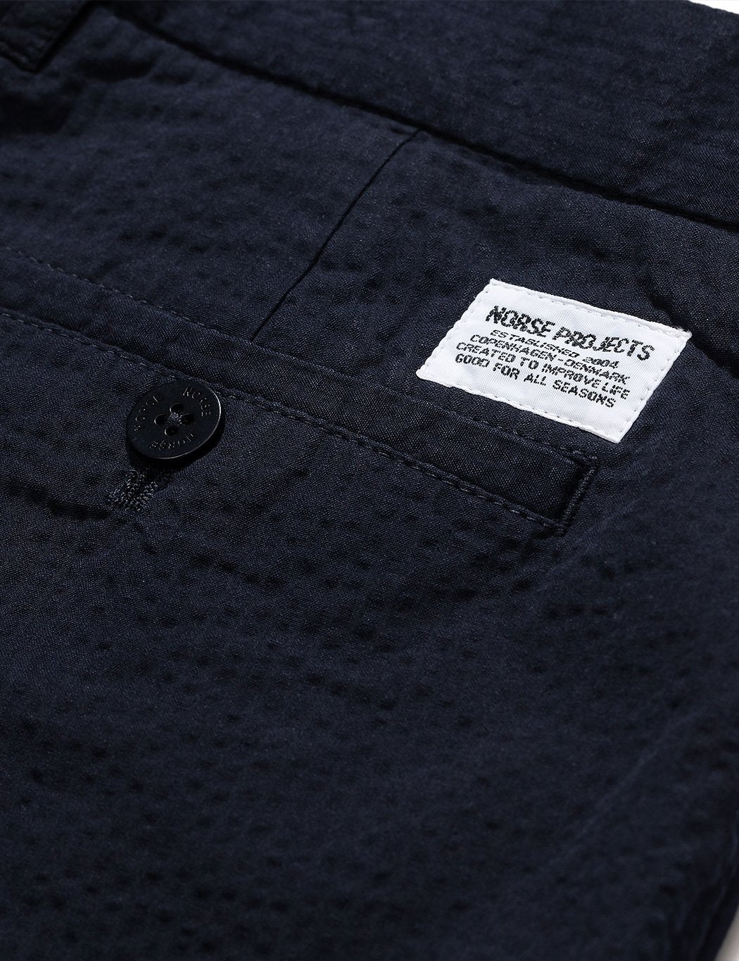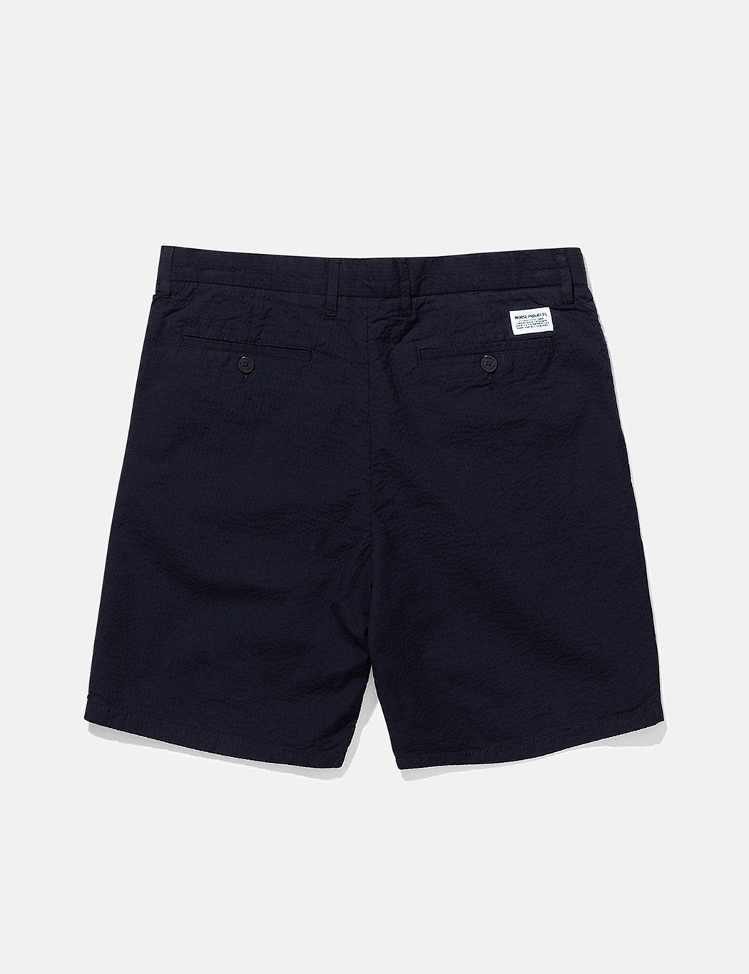 The Norse Projects Aros Seersucker Shorts in Dark Navy Blue from the Norse short collection.