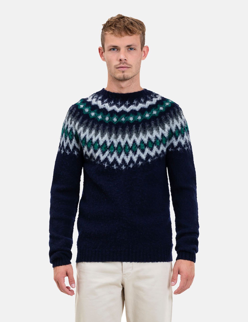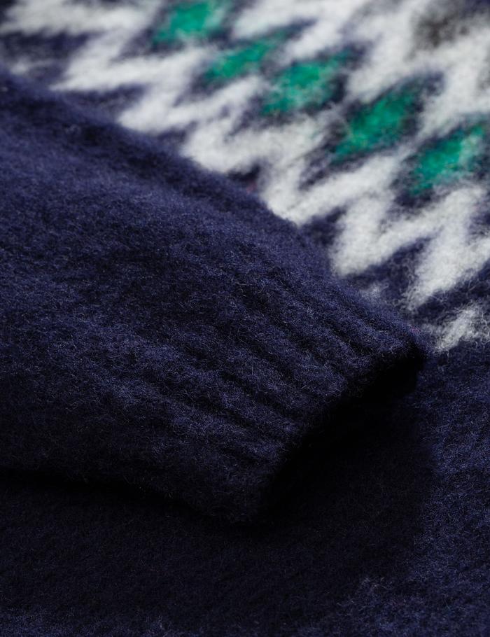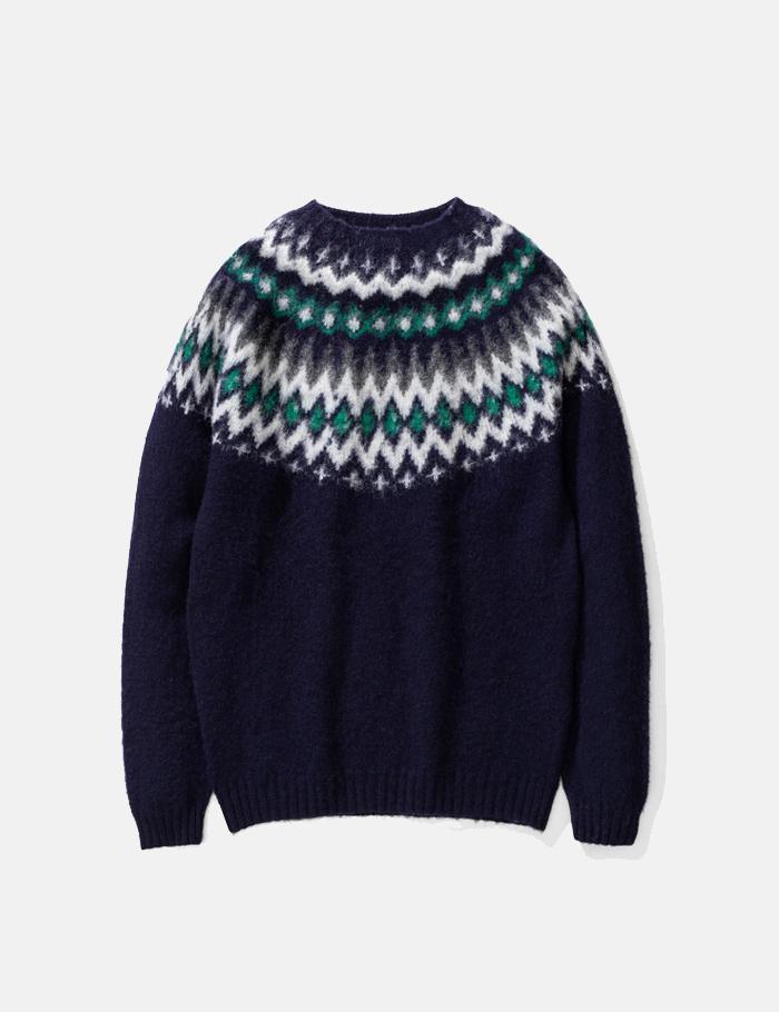 The Norse Projects Birnir Fairisle Knitted Sweatshirt in dark navy blue from the Norse Projects sweatshirts Autumn/Winter 2019 collection.