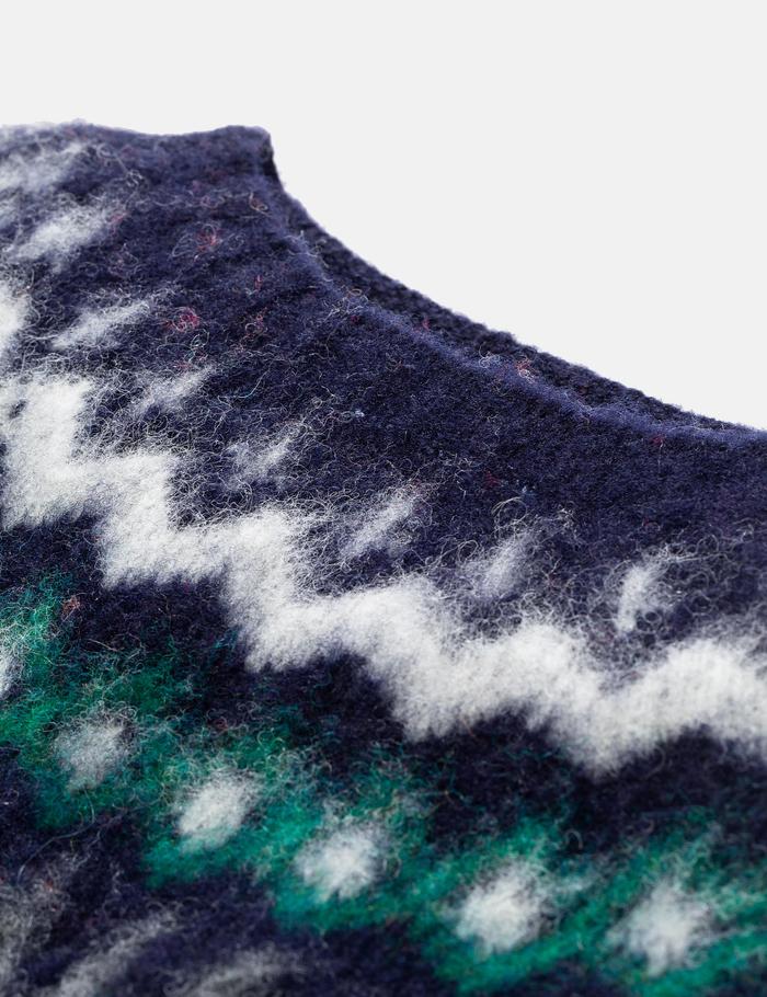 Norse Projects Birnir Fairisle Knitted Sweater - Dark Navy Blue