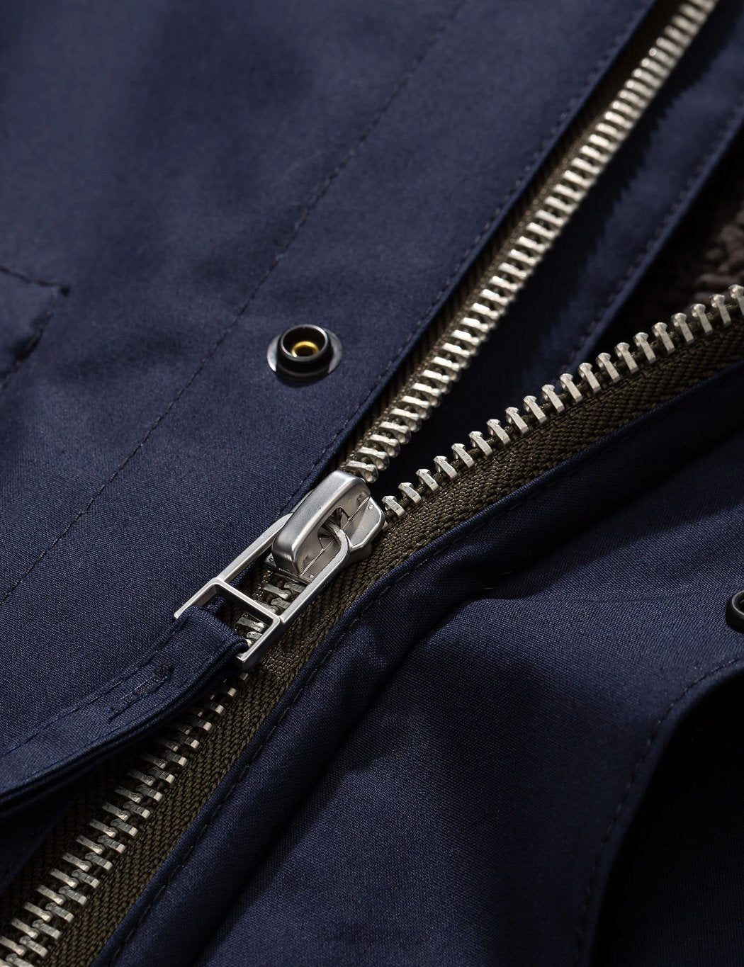 Elias is a classic 2 pocket rain parka with a removable lining which can use worn as a separate garment. Features a 2 way zip, storm flap, Cobrax snap closure and an adjustable drawstring hood and waistband.