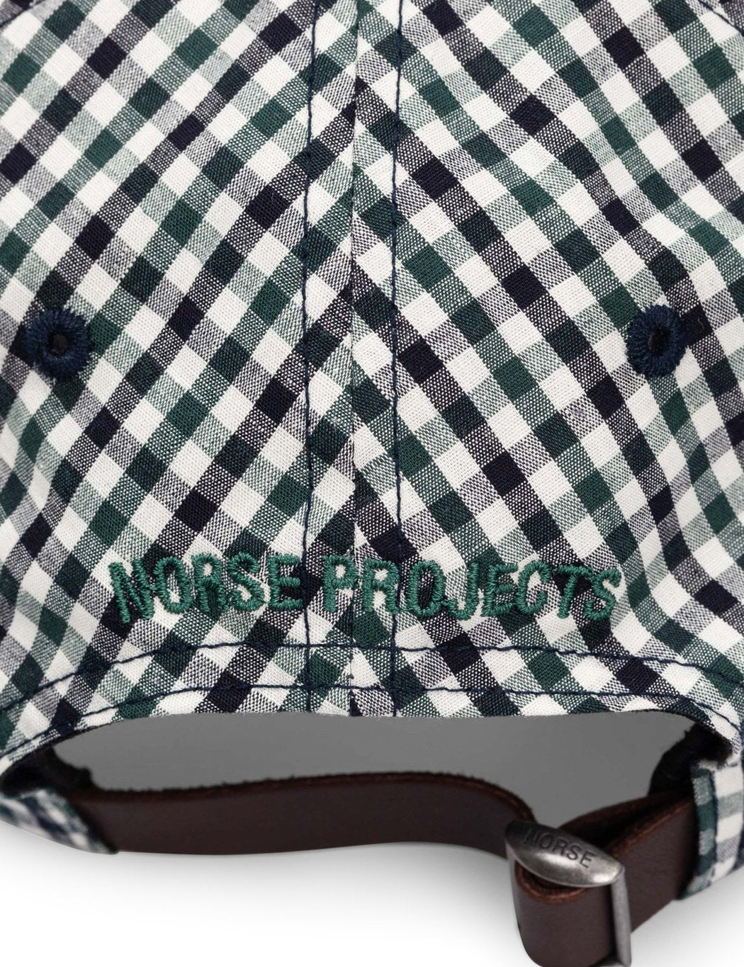 The classic Norse sports cap in a yarn dyed cotton check, finished with a mini embroidered ‘N’ logo at front, and tonal 'Norse Projects' back embroidery.