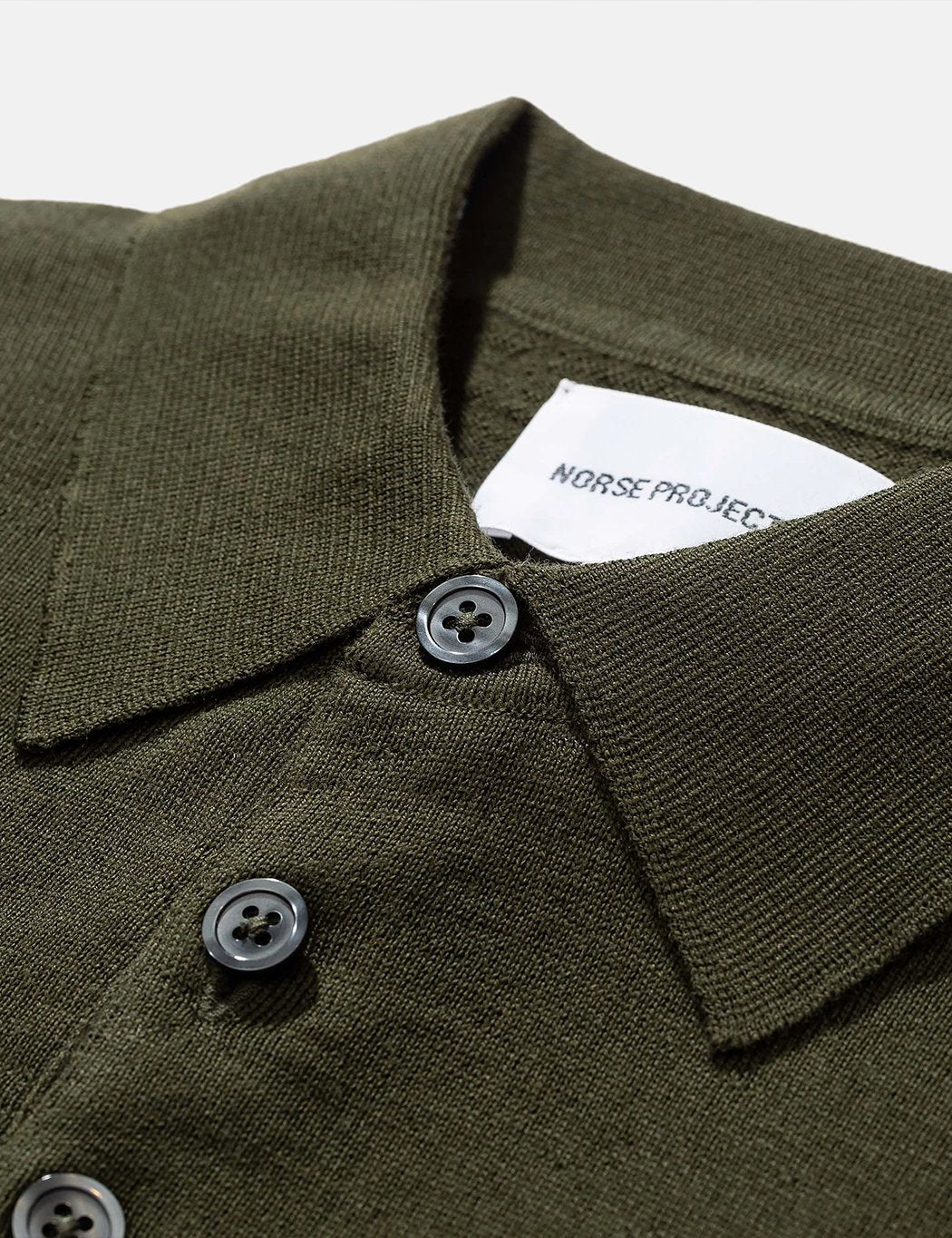 The Norse Projects Johan Merino Polo in beech green from the Norse Projects polo shirts Autumn/Winter 2019 collection.