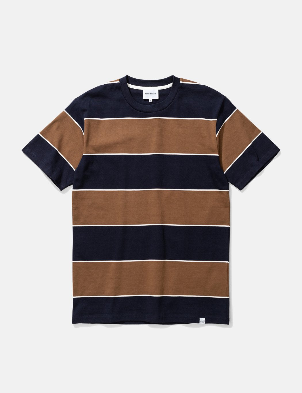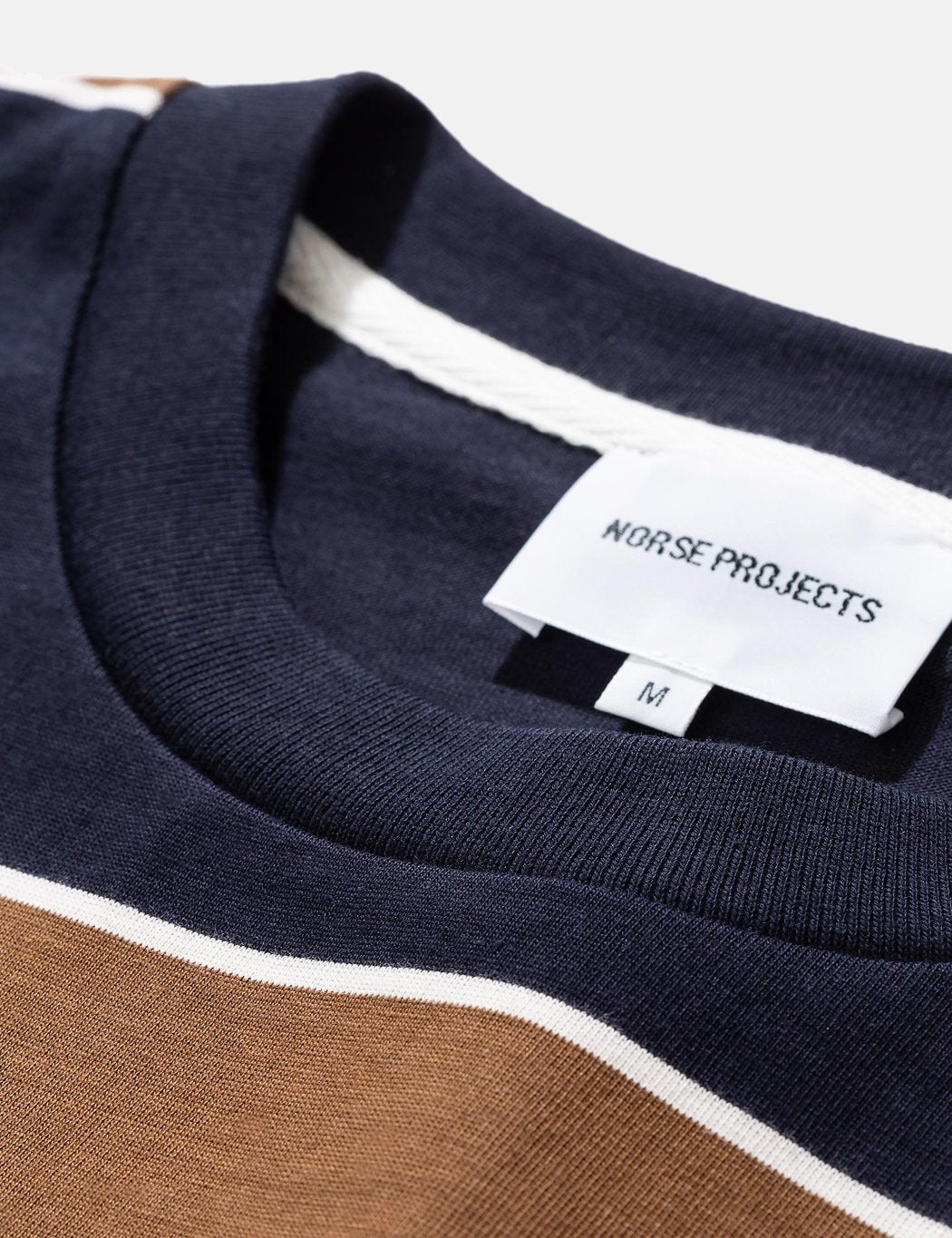 The Norse Projects Johannes 3 stripe t-shirt in russet brown from the Norse Projects t-shirts Autumn/Winter 2019 collection.