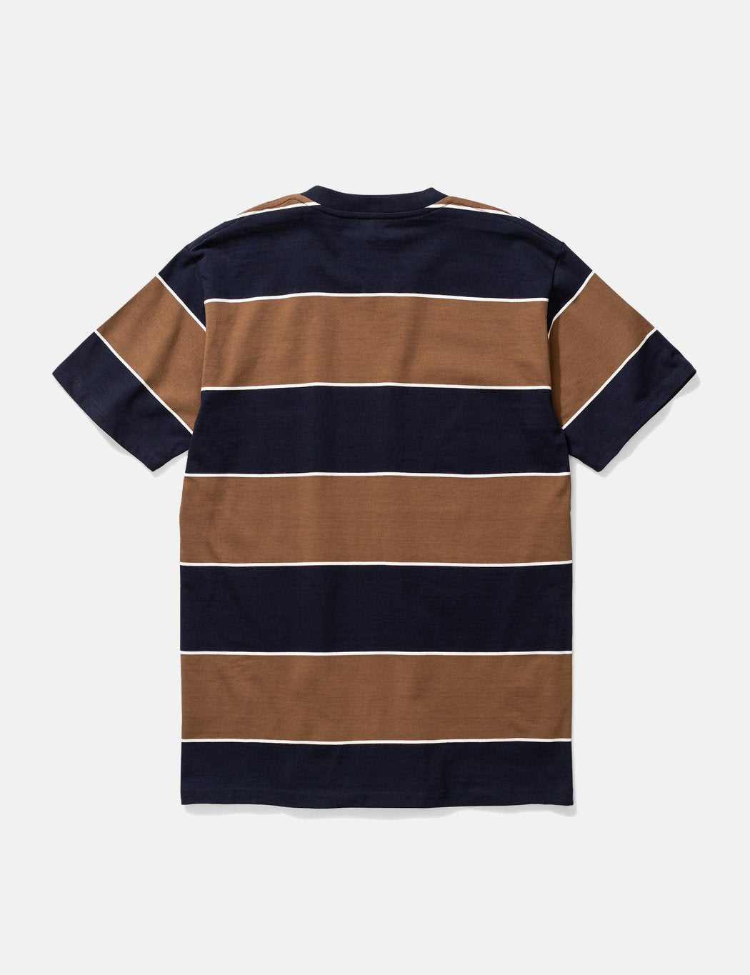 The Norse Johannes is a relaxed fit short-sleeved jersey with wide stripes in bright colours. Cut from a rugged jersey this style is inspired by a stripe repeat, which often appears in classic sportswear. Features a self-fabric collar and minimal stitching.