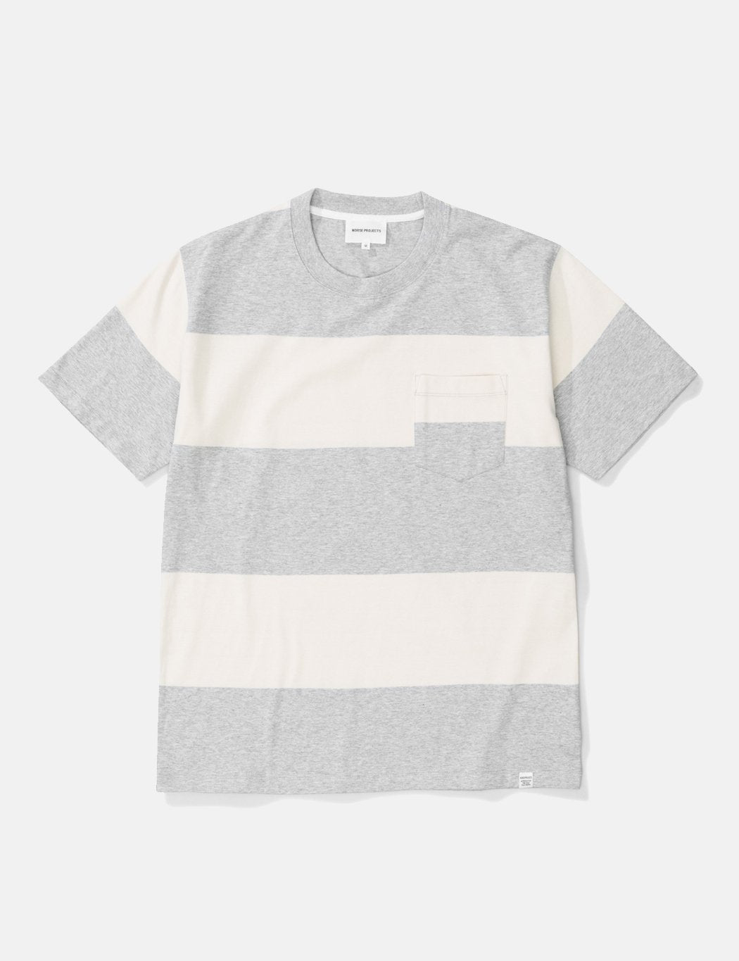 The Norse Projects Johannes Block Stripe T-Shirt in Light Grey Melange from the Norse Projects t-shirts Spring/Summer 2019 collection.