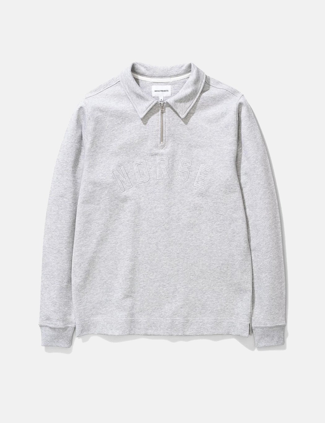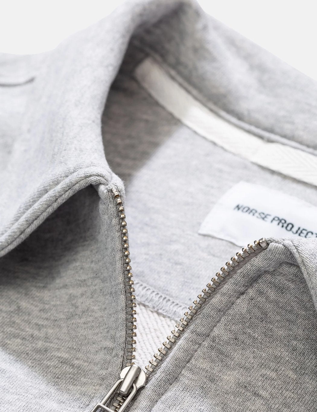 The Norse Projects Jorn Half Zip sweatshirt in light grey melange from the Norse Projects autumn/winter 2019 sweatshirts collection.