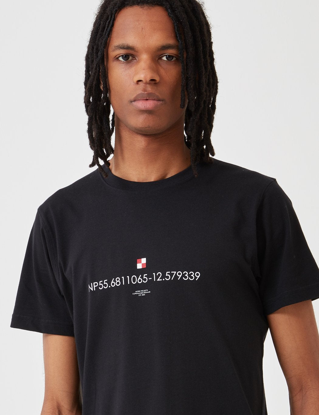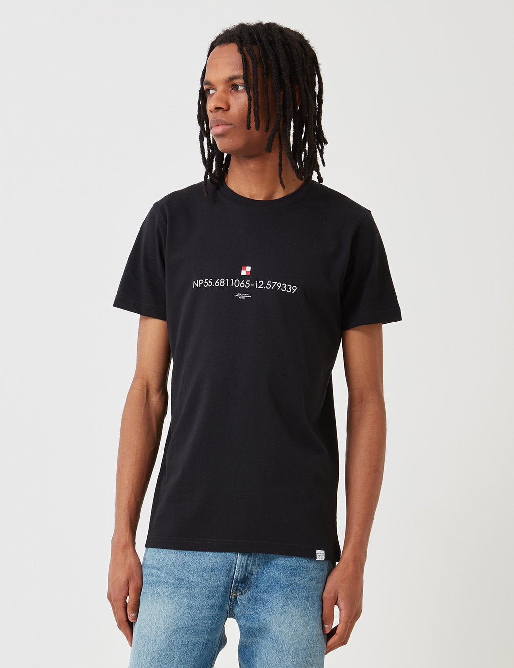 The Norse Projects Niels Coordinates Logo T-Shirt in Black from the Norse t-shirts Spring/Summer 2019 collection.