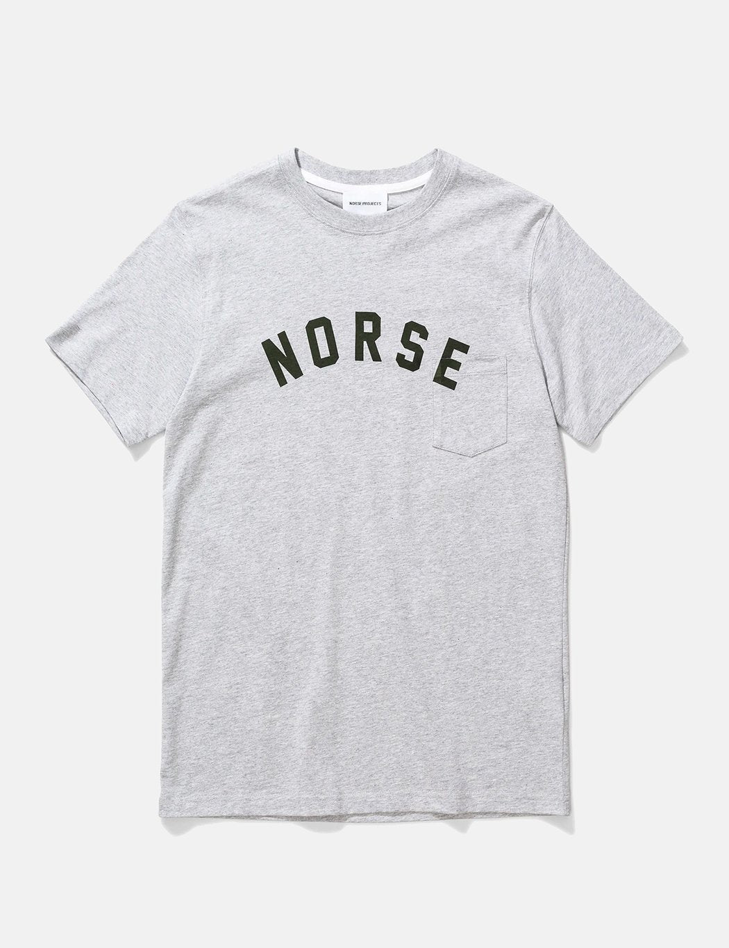Norse Projects Niels Ivy Logo Pocket T-Shirt - Light Grey Melange