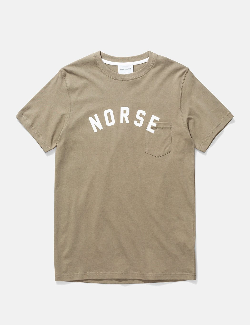 A 180 GSM classic Norse Projects t-shirt featuring Norse screen printed collegiate script across the chest. 100% cotton.