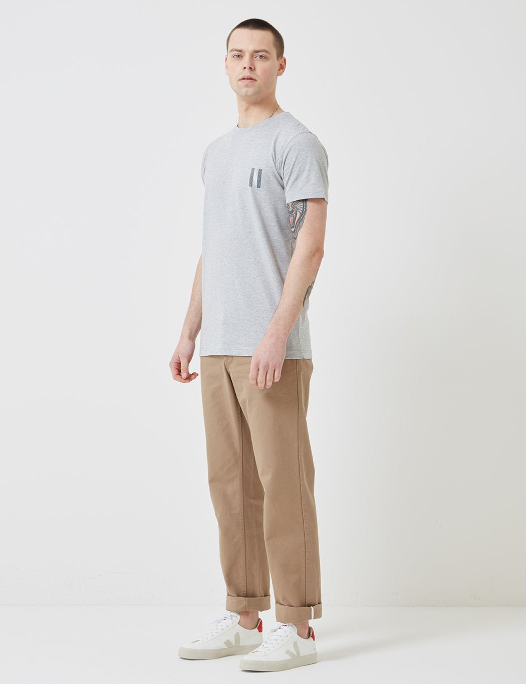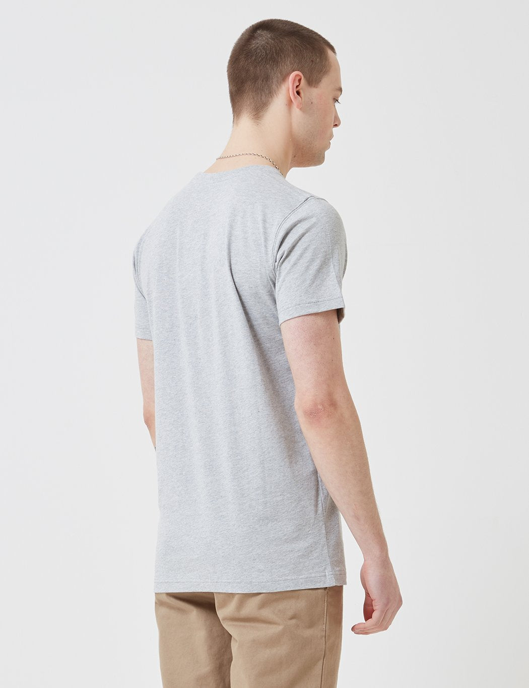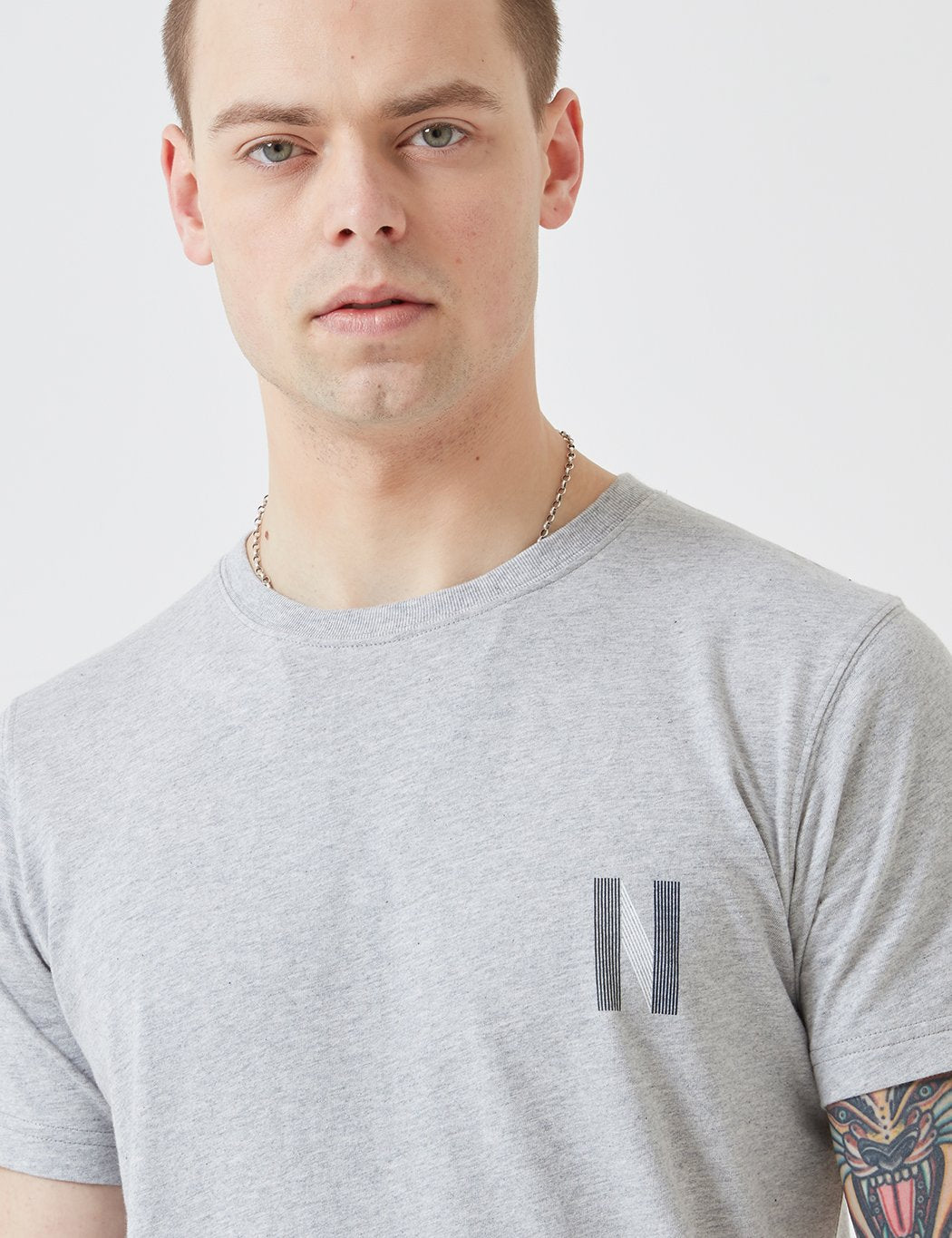 The Norse Projects Niels Multi Logo T-Shirt in Light Grey Melange from the Norse t-shirts Spring/Summer 2019 collection.