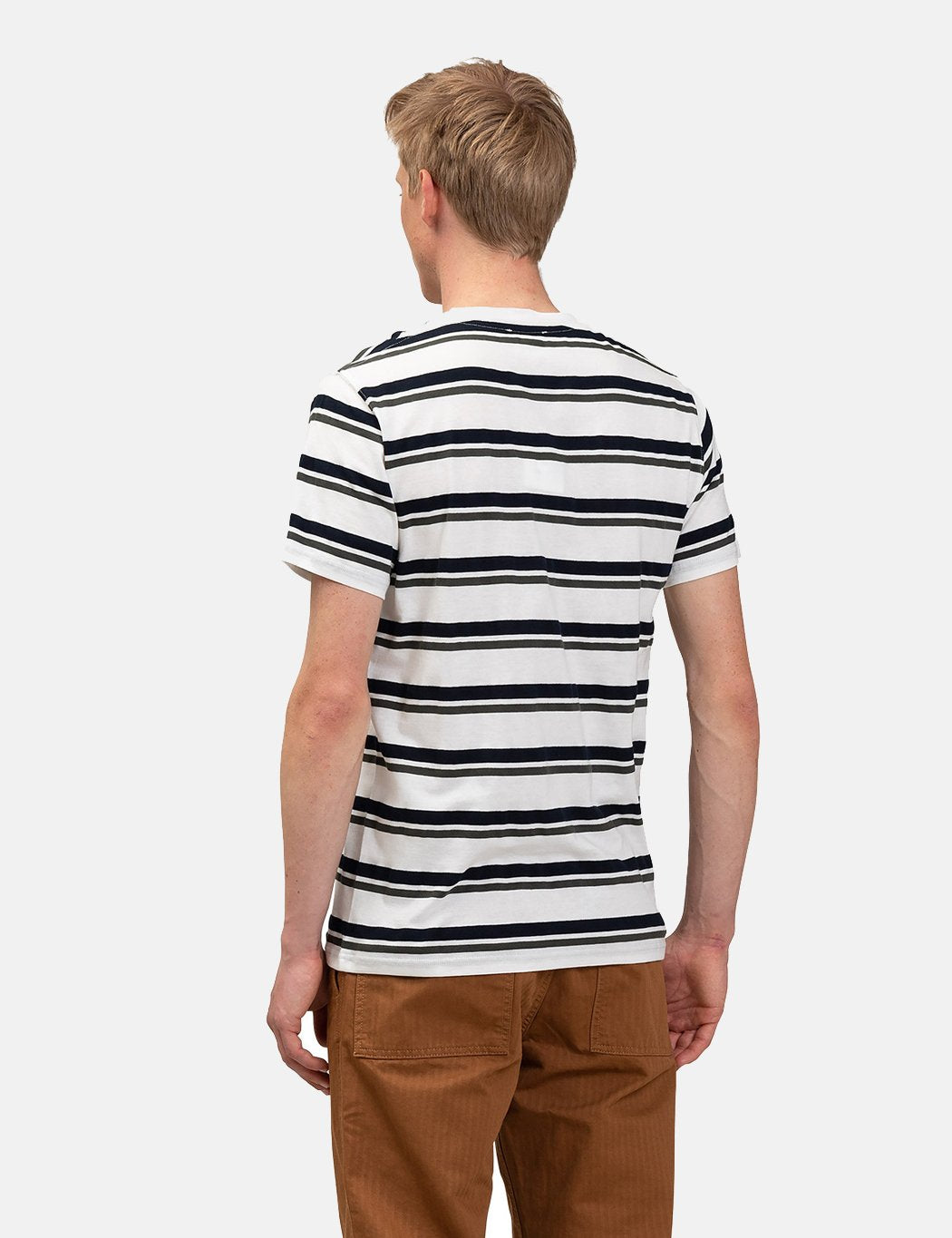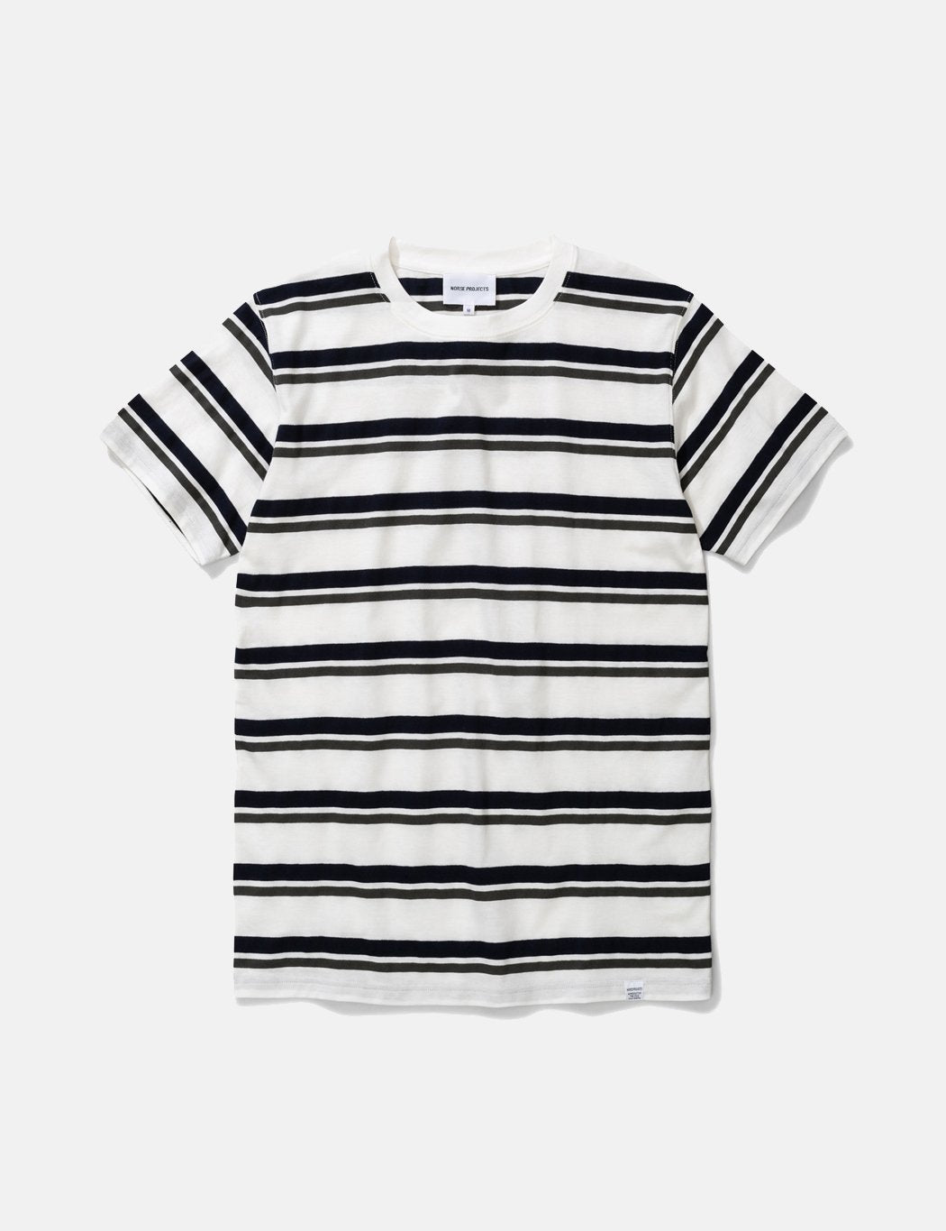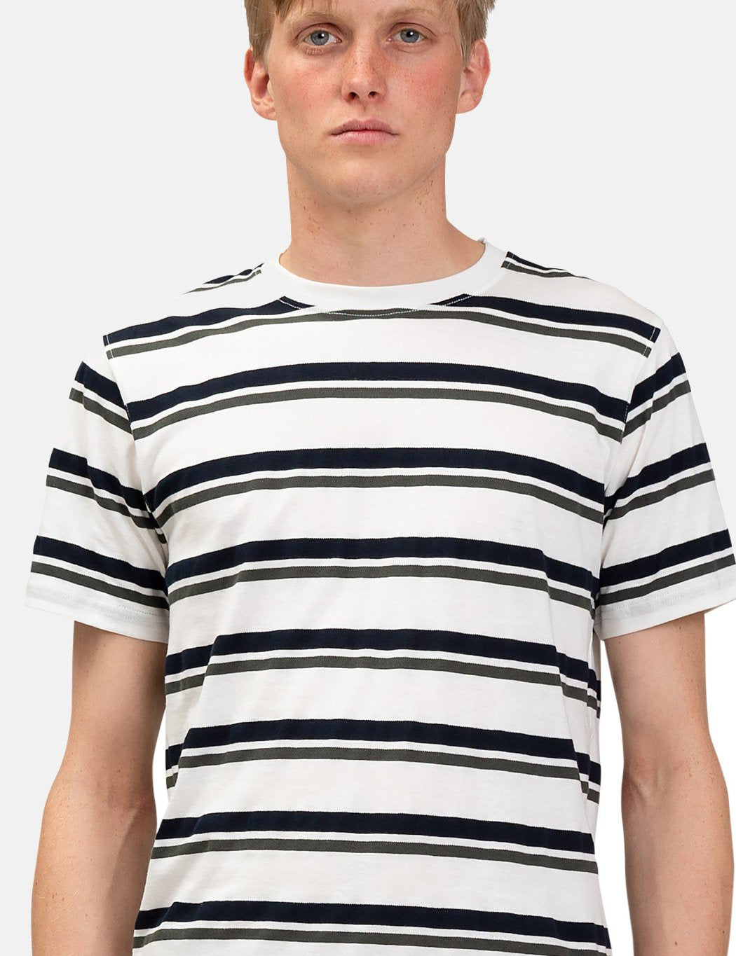 The Norse Projects Niels pique stripe T-Shirt in white with ivy green and dark navy stripes from the Norse t-shirts Autumn/Winter 2019 collection.