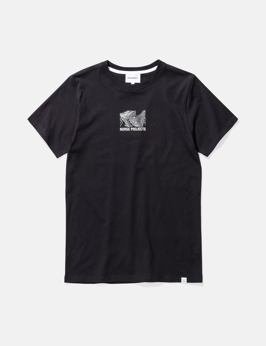 The Norse Projects Niels small Topo logo tshirt in black from the Norse t-shirts Autumn/Winter 2019 collection.