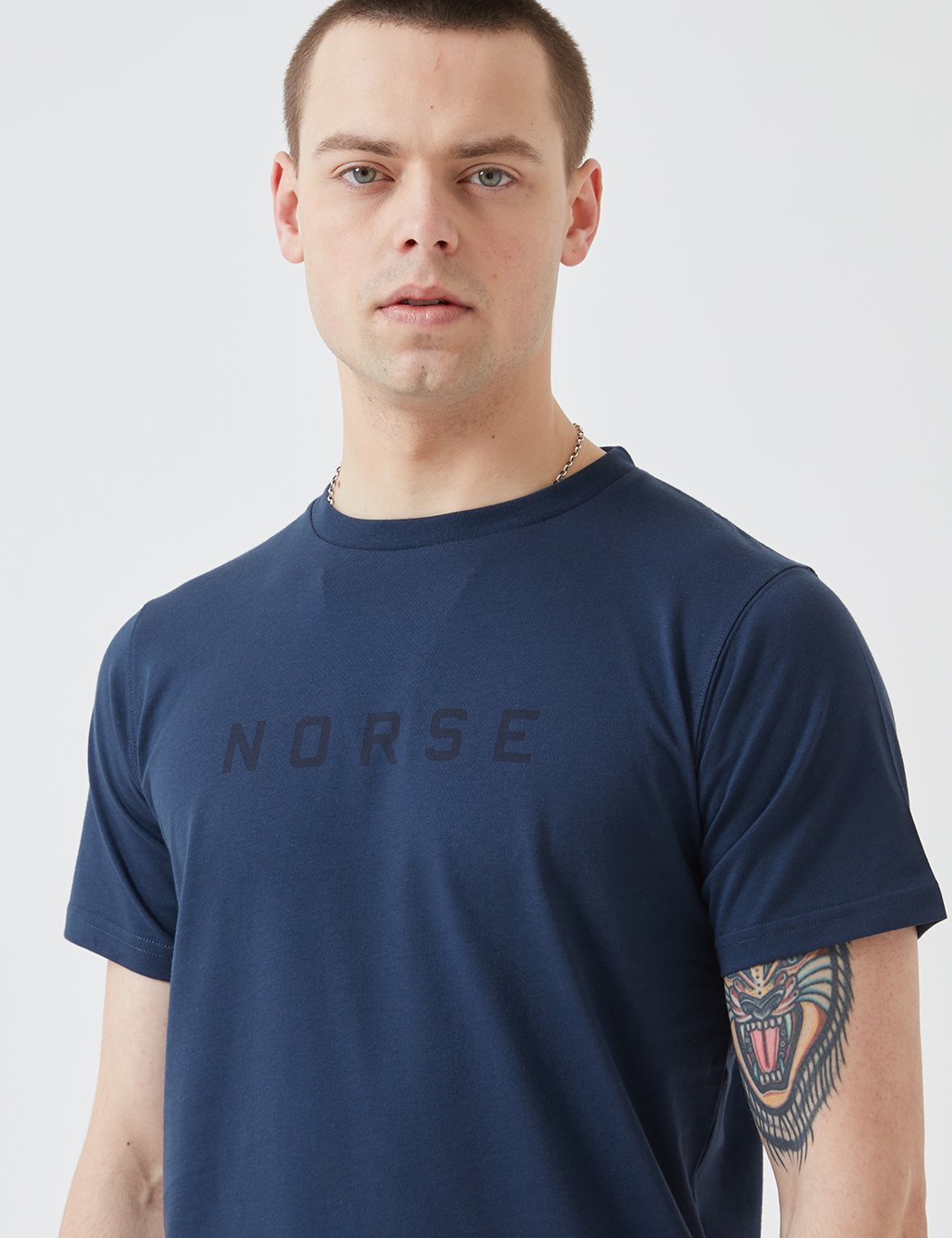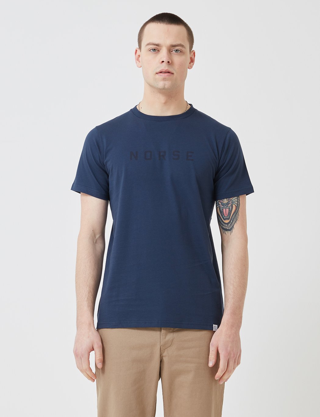 The Norse Projects Niels Standard Logo Graphic T-Shirt in Navy from the Norse t-shirts Autumn/Winter 2018 collection.