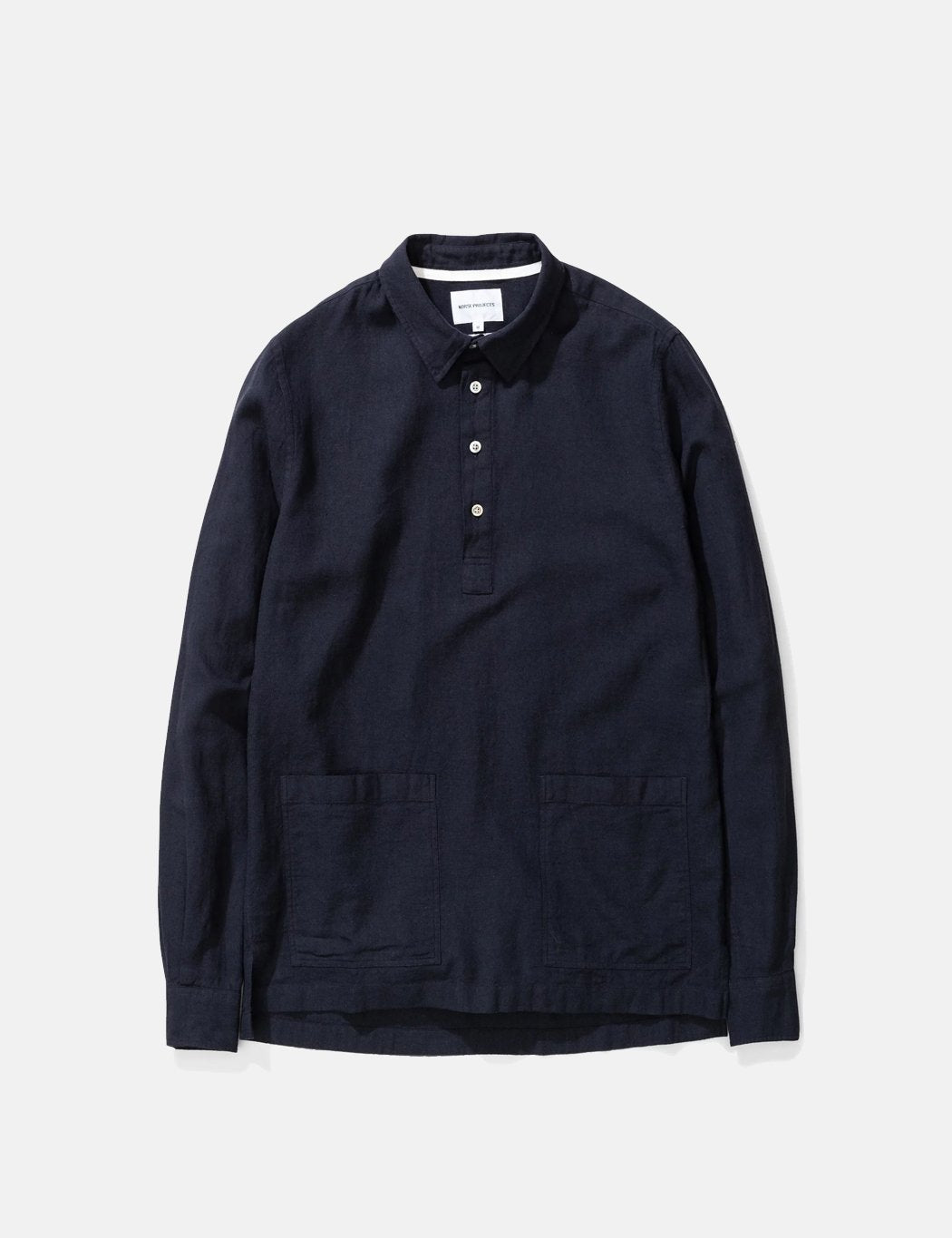 Norse Projects Oscar Half Placket Shirt - Dark Navy Blue