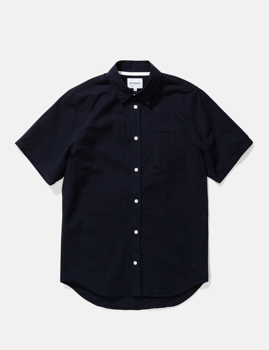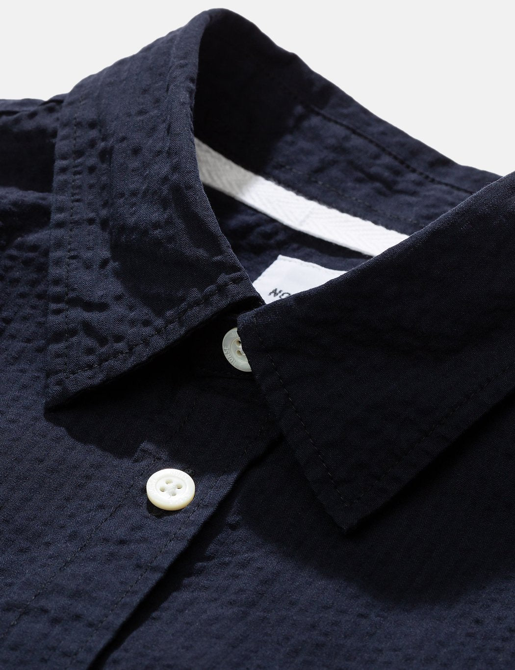 Norse Projects Osvald Seersucker SS Shirt - Dark Navy