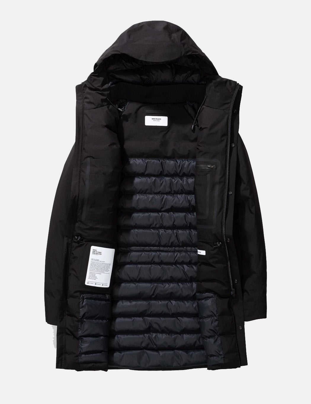 The new Rokkvi 5.0 parka constructed using a GORE-TEX membrane, bonded to a lightweight outer fabric and finished with a DWR coating. The lightweight, waterproof outer is constructed with fully waterproof seam finishing throughout, and a fixed lining insulated with 90/10 EU Standard Certified Goose Down. In order to ensure animal welfare and high quality Norse Projects demands that all its down suppliers comply with a RDS (Responsible Down Standard) certification.